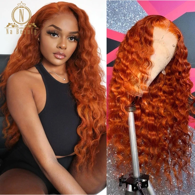 Имбирный оранжевый кружевной передний парик HD прозрачный кружевной парик Имбирные волнистые человеческие волосы парики для черных женщин предварительно выщипанные Nabeauty