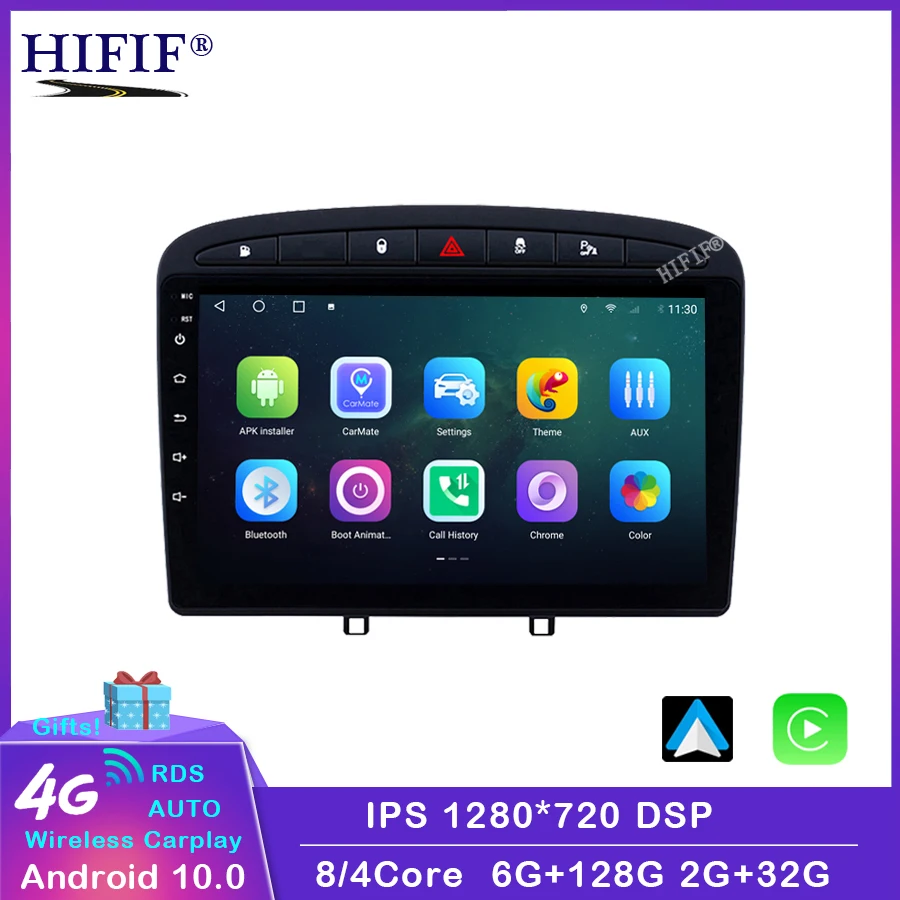Автомобильный DVD-плеер для Peugeot, 4 Гб + 64 ГБ, Android 10, мультимедийный проигрыватель с радио, GPS-навигацией, Wi-Fi, RDS, IPS, 2din, без dvd, для Peugeot 408, 308, 308SW