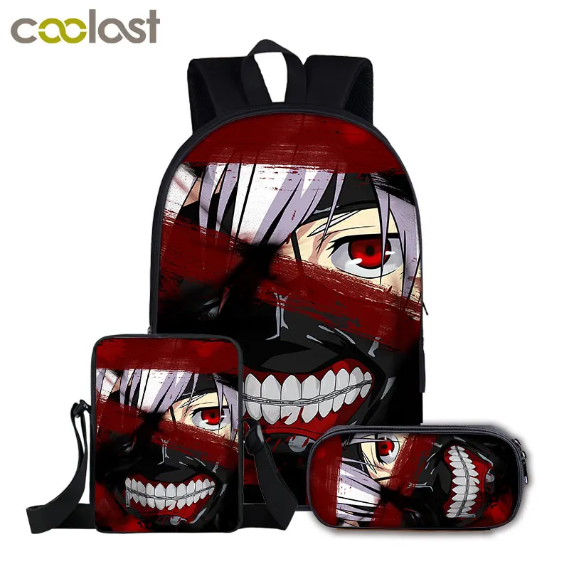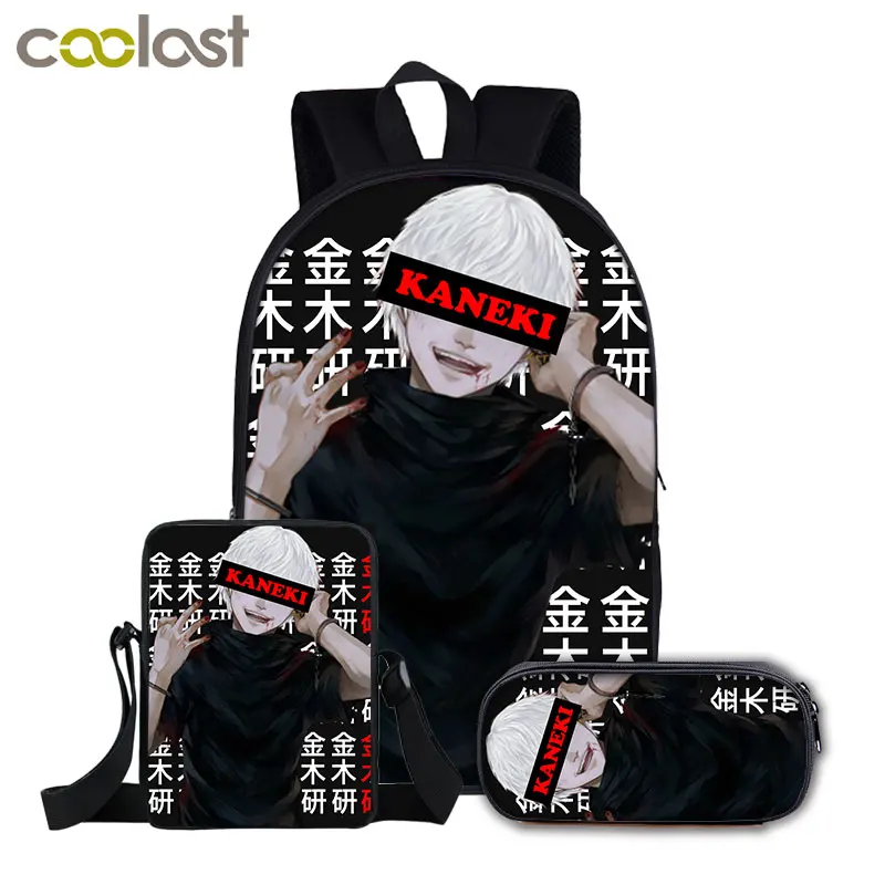 3 шт./компл., японский аниме, Токийский Гуль, рюкзак для мальчиков-подростков, сумка для книг, дорожная сумка, детские школьные рюкзаки, сумка-карандаш, наборы