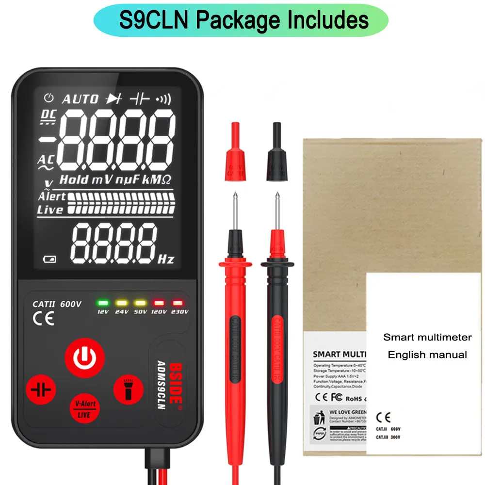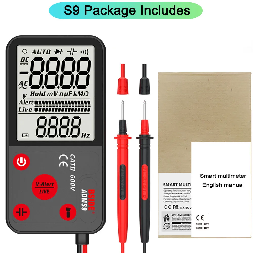 Цифровой смарт-мультиметр BSIDE, Вольтметр постоянного тока, переменного тока, конденсатор, диод, NCV, Ом, огнеупорный провод, герц, тестер 9999, дисплей EBTN