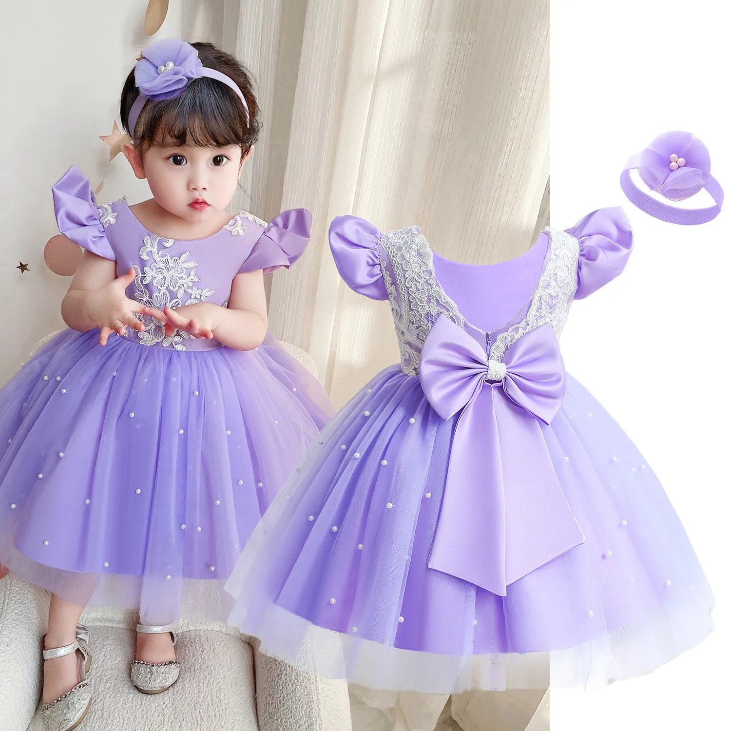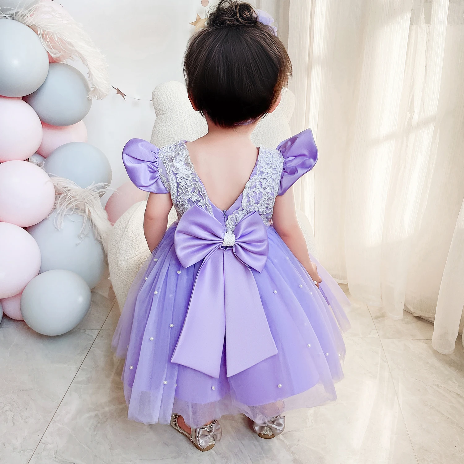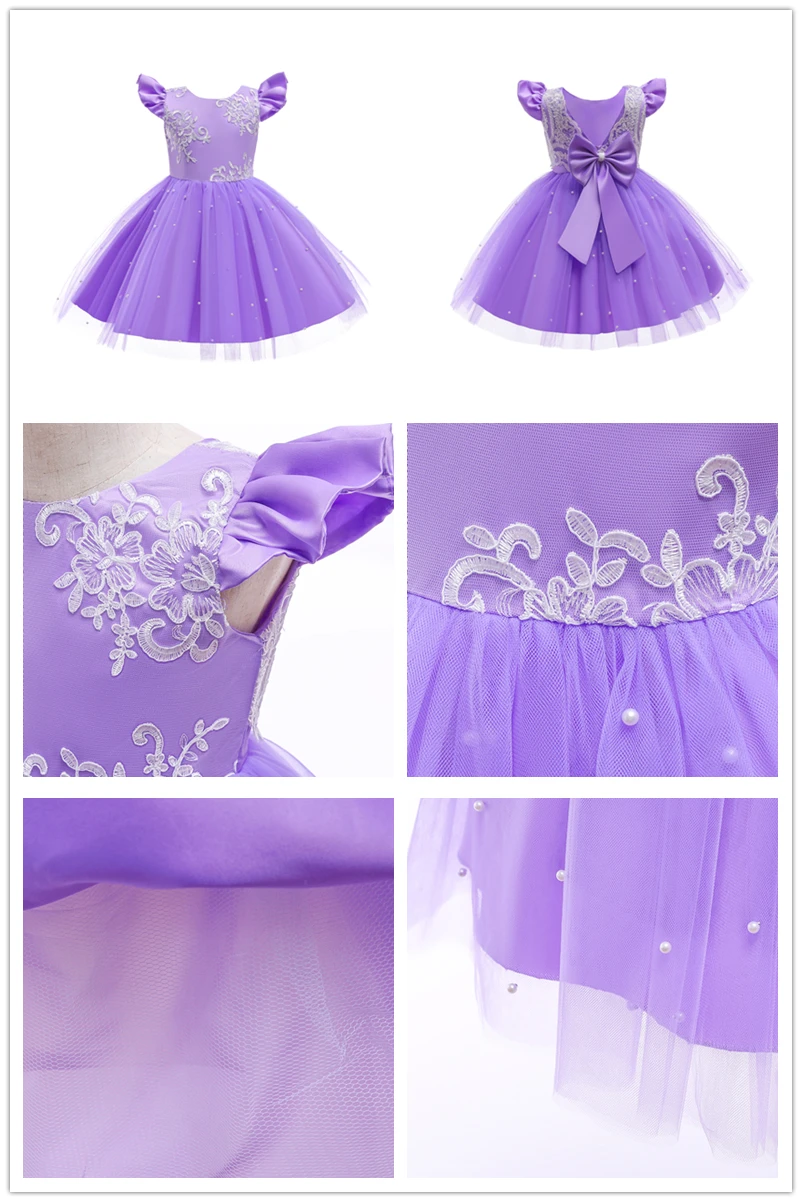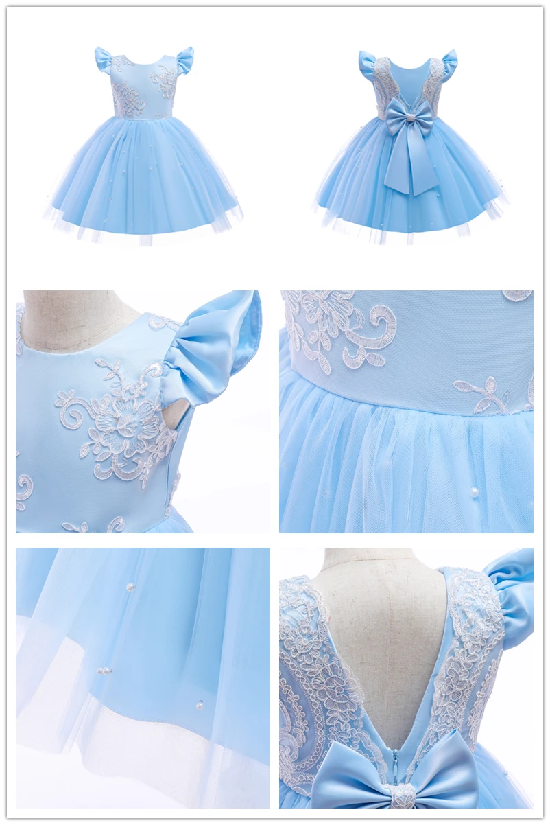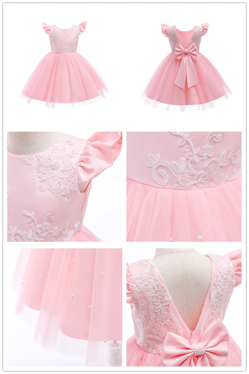 Кружевное платье с вышивкой, для маленьких девочек, платье принцессы с бантом, Тюлевое, для вечеринки, свадьбы, дня рождения, платья-пачки для девочек