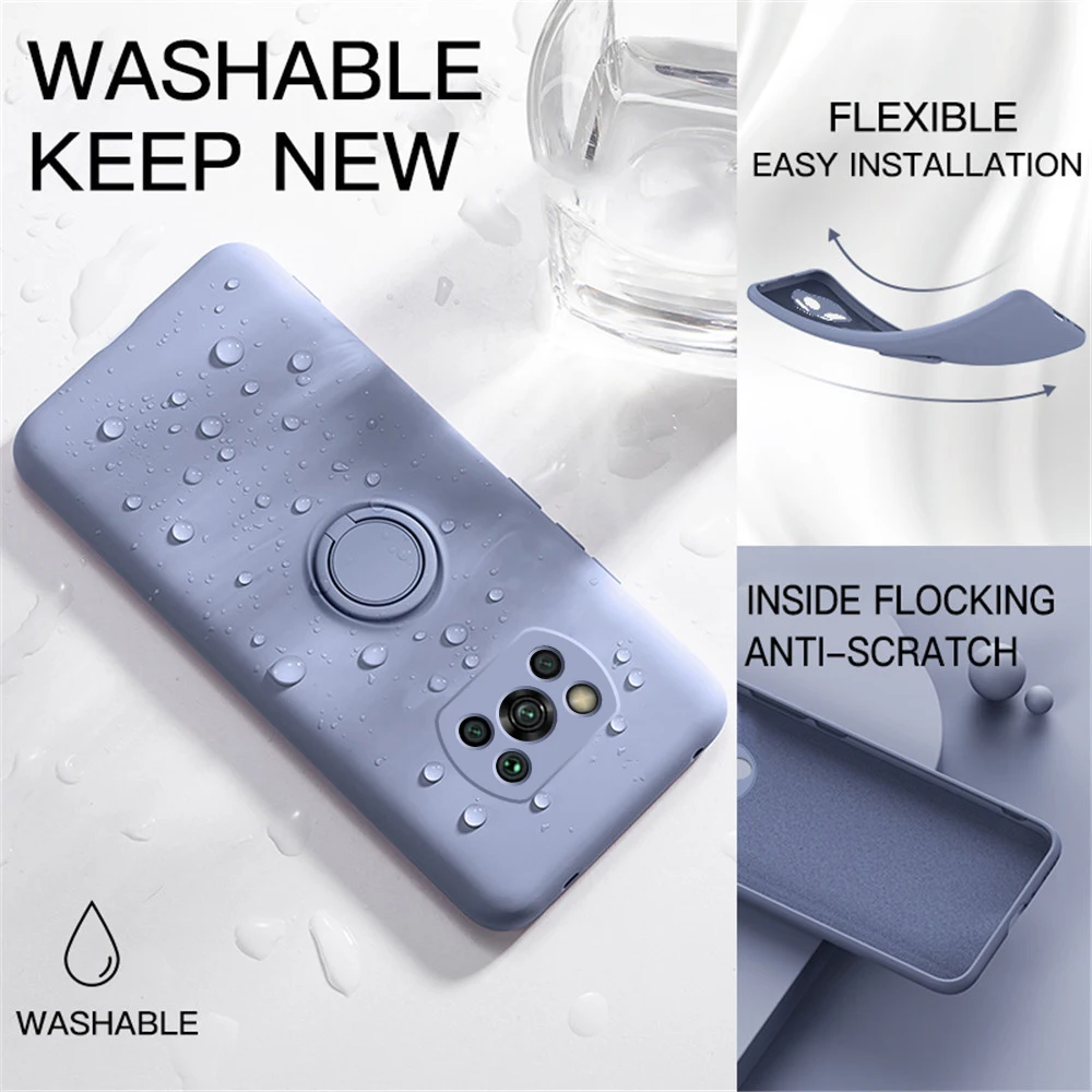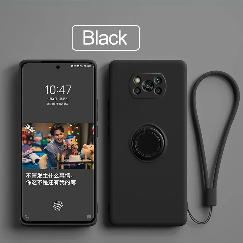 Чехол Poco X3 про из жидкого силикона с кольцом-держателем, мягкий чехол с ремешком, защита для камеры, корпус для телефона сяоми Poco X3 Pocox3 х 3 poko x3 nfs про NFC чехлы обложка
