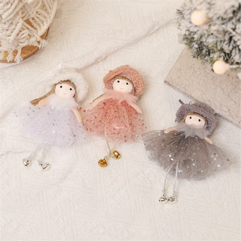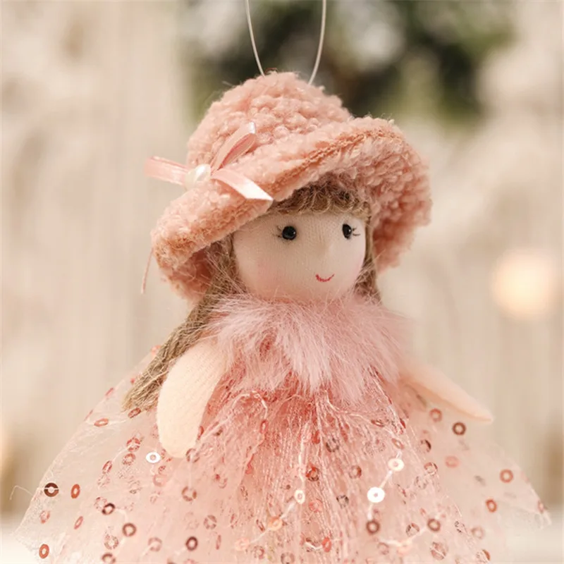 Рождественские праздничные украшения, пушистая подвеска для девочки, розовый креативный кулон, кукла ангел, браслет, шарм, детский подарок