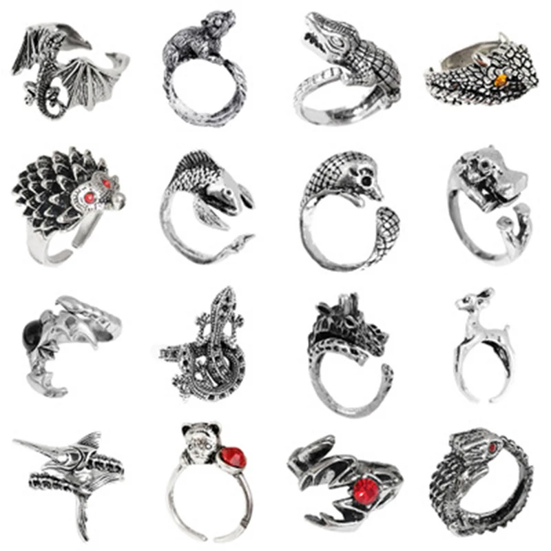 Открытое кольцо с животными в стиле ретро, регулируемое мужское мил...