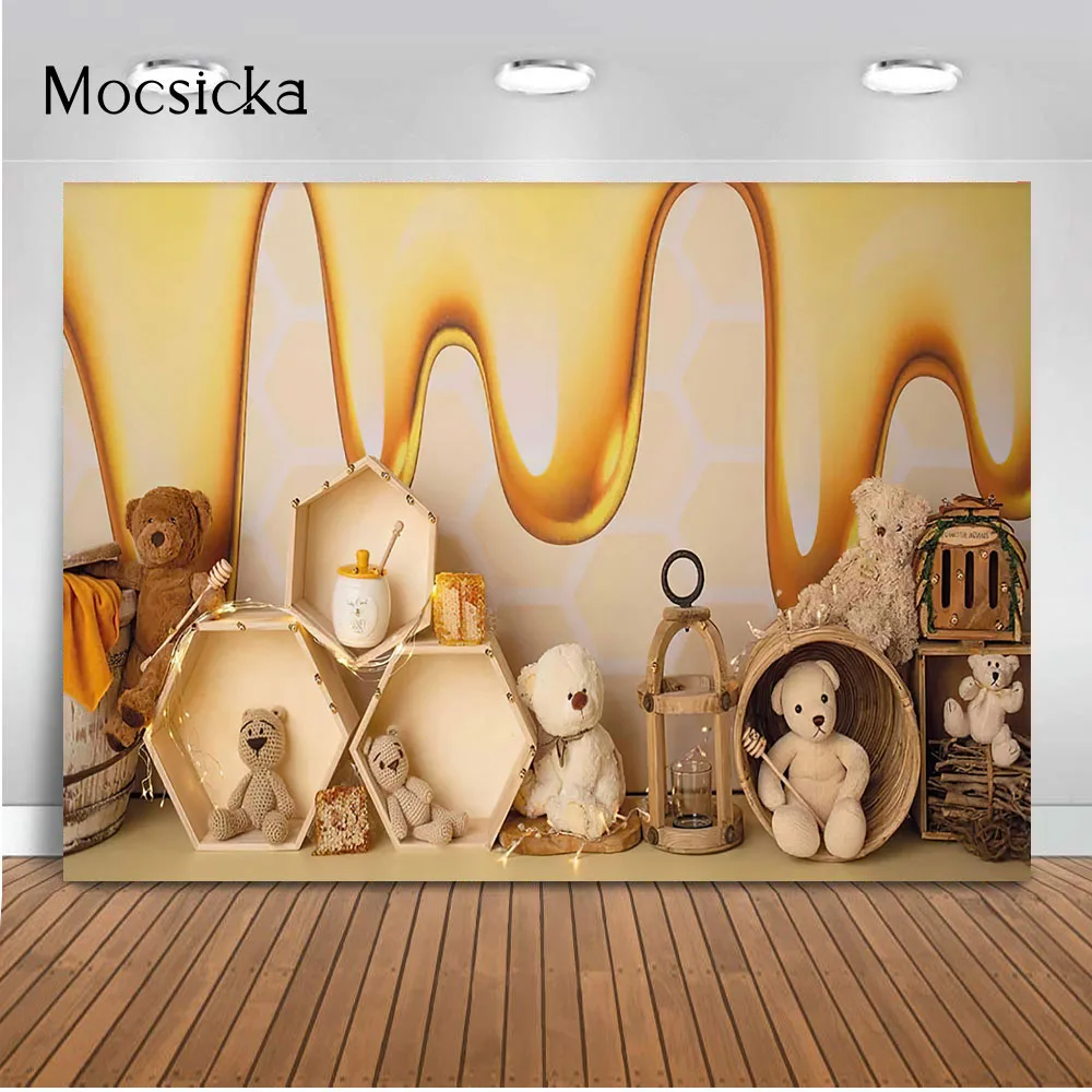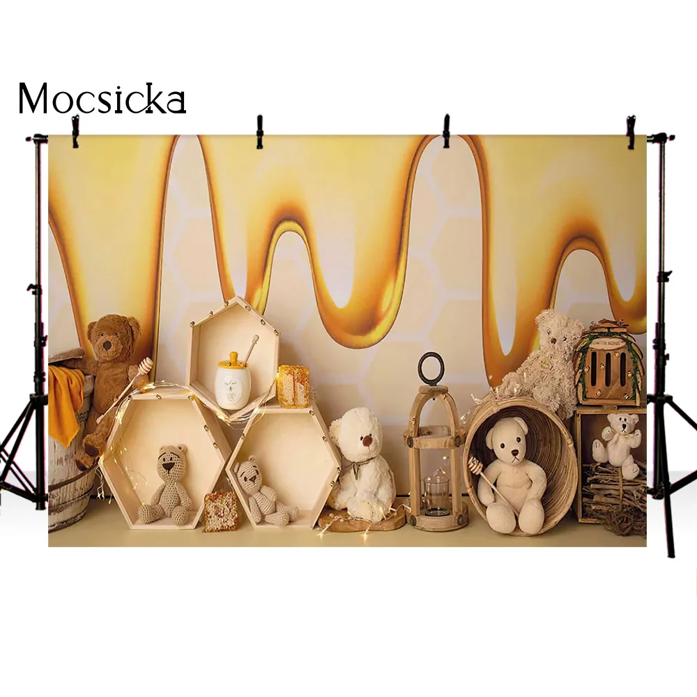 Фон с медведем для фотосъемки новорожденных детей торт самш пчела день рождения тематическое украшение для вечеринки сотовый декор для будущей мамы