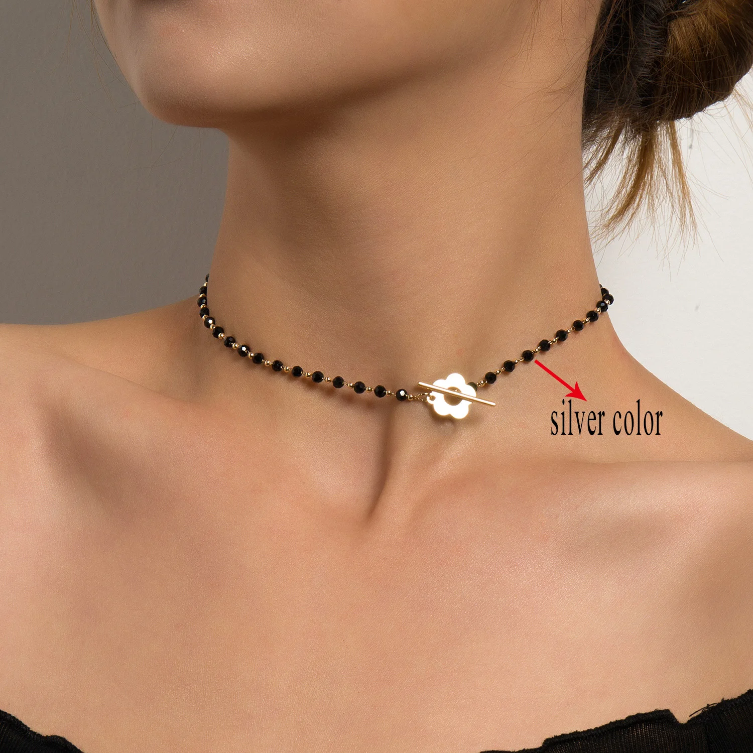 Цепочка-чокер Женская, с черными хрустальными бусинами