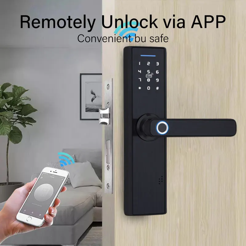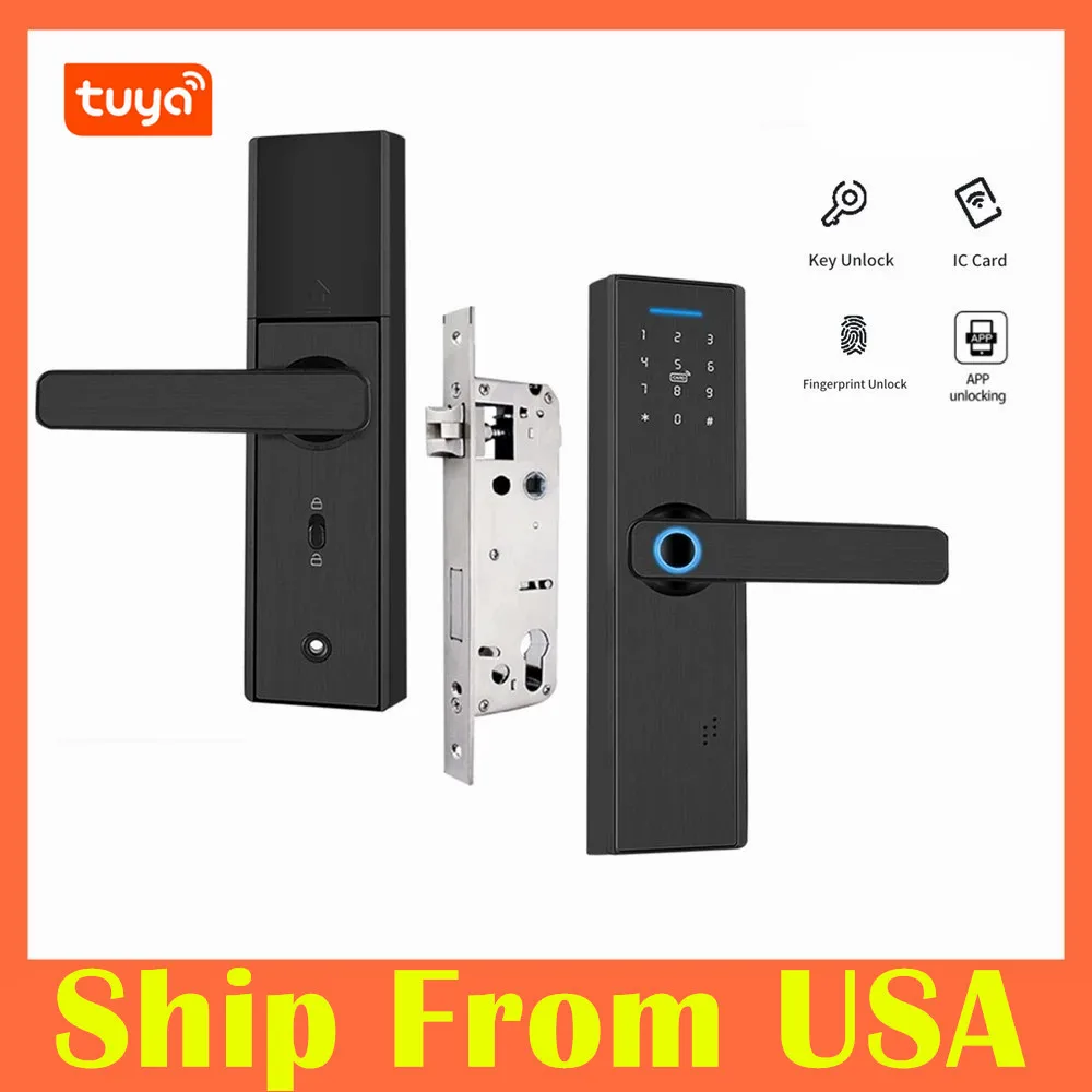 Регулируемый дверной смарт-замок Tuya, Wi-Fi замок для домашней электроники, со сканером отпечатков пальцев и паролем, 60-70 мм