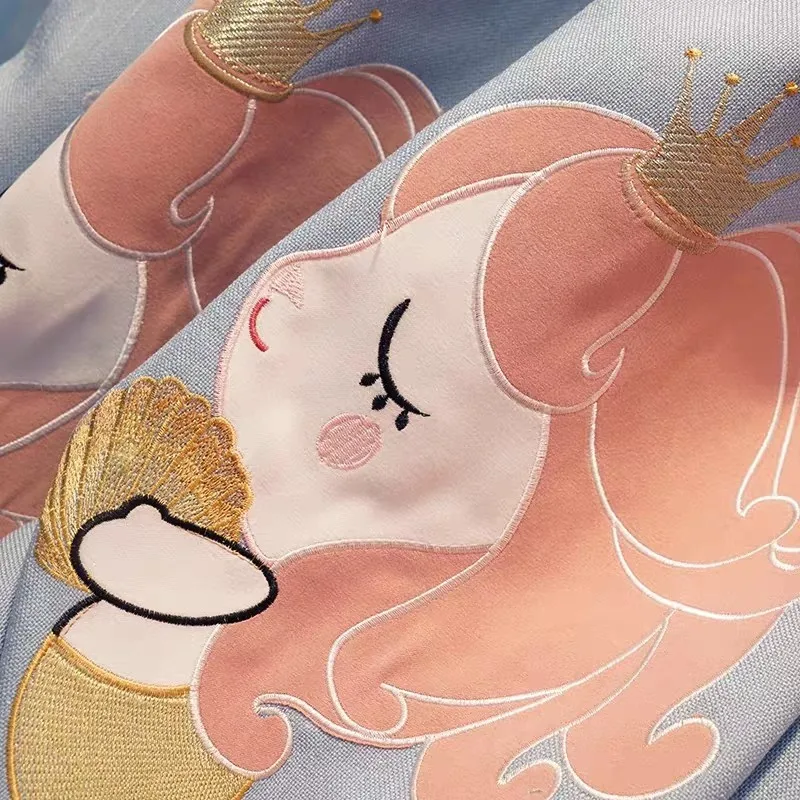 Шторы из хлопка и льна с вышивкой в виде русалки для детской
