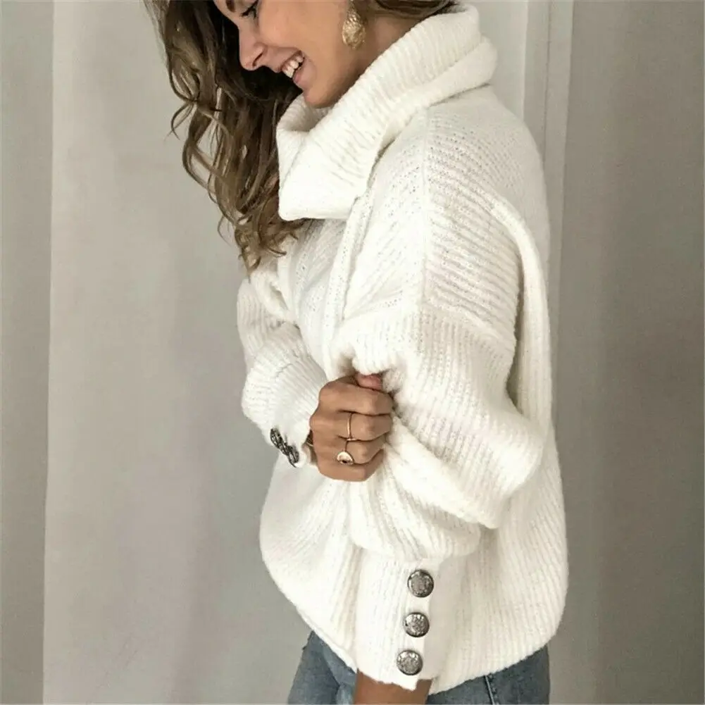 Женский вязаный свитер с длинным рукавом, джемпер, пуловеры, трикотажная одежда, модный однотонный свитер с высоким воротником на осень и зиму