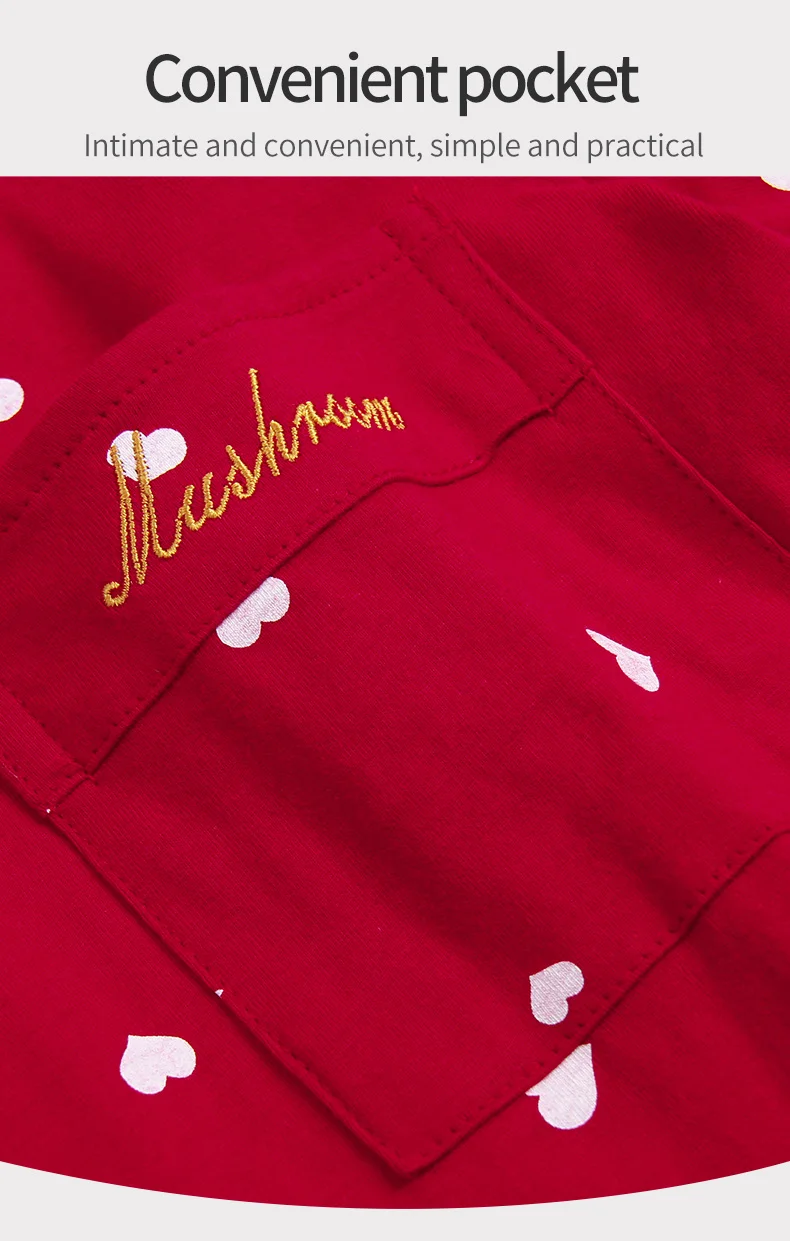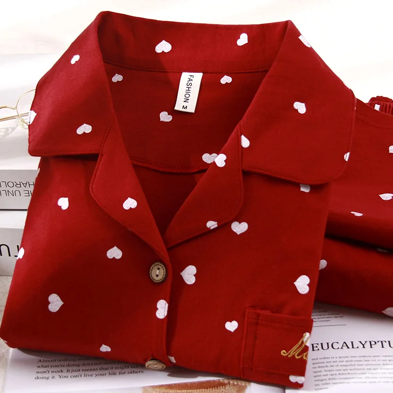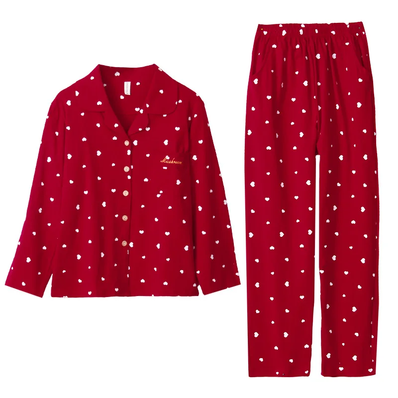 Женский пижамный комплект, зимняя красная пижама для женщин, 100% Хлопковая пижама, одежда для сна, 2 предмета, домашняя одежда с принтом в форме сердца