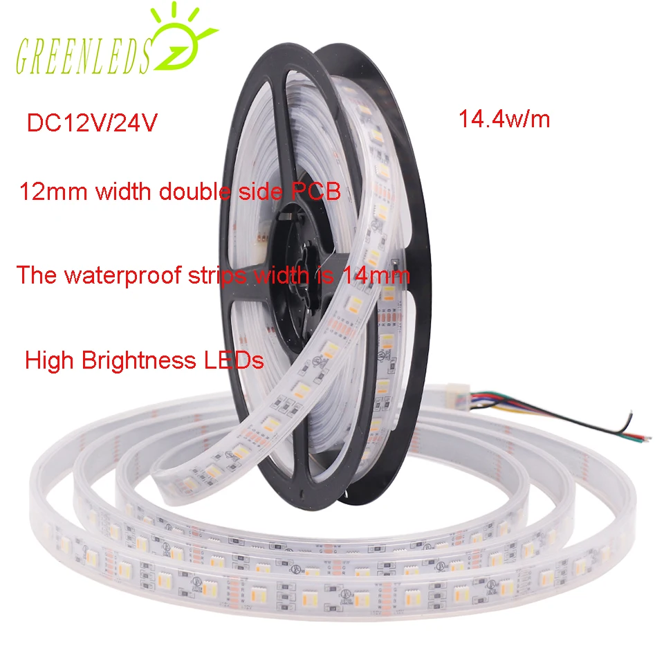 Светодиодные ленты IP67, водонепроницаемые, 60 светодисветодиодный на метр, RGBW + WW, цвет 14,4 Втм, 12 В24 В, гибкие ленты с гарантией 3 года