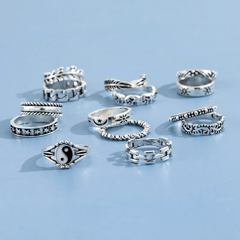 Кольца в виде слона Тай Чи со звездой, набор модных резных колец в виде цветов для женщин и мужчин, ювелирные изделия для вечеринок, аксессуары