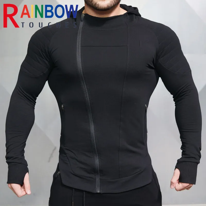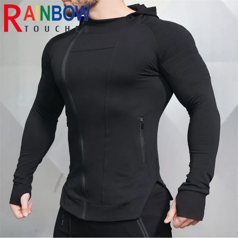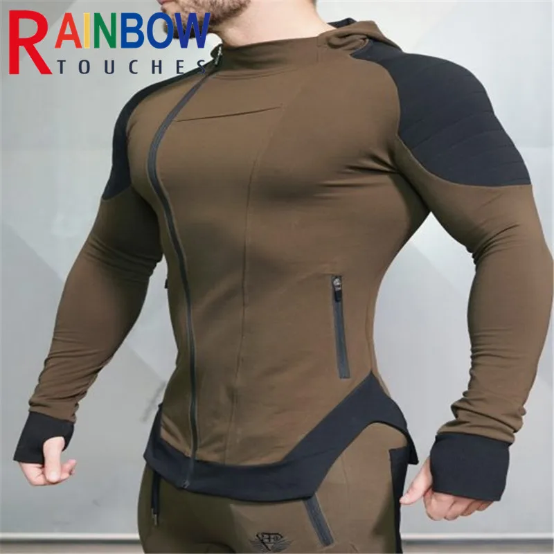 Rainbowtouches 2022 всесезонные мужские облегающие свитера для фитнеса с вышивкой на молнии с карманами уличные спортивные мужские топы с капюшоном
