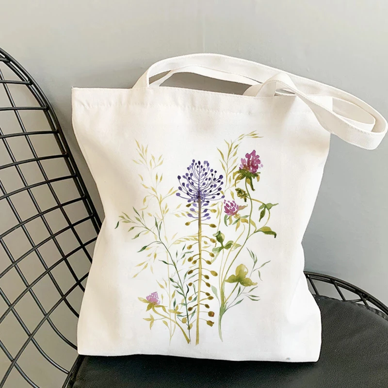 Холщовая Сумка-тоут с цветочным принтом, сумка для покупок в Корейс...