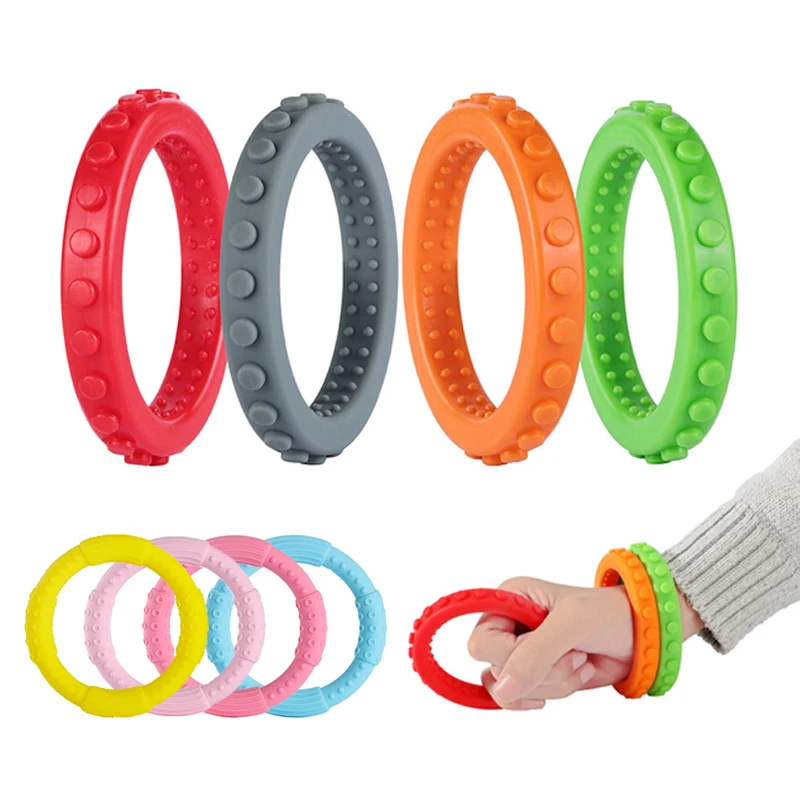 Детская, жевательная кусания игрушки для страдающих аутизмом СДВГ жевательный детский Прорезыватель для зубов в форме кольца браслет для младенцев сенсорный Прорезыватель зубов силиконовый детский подарок