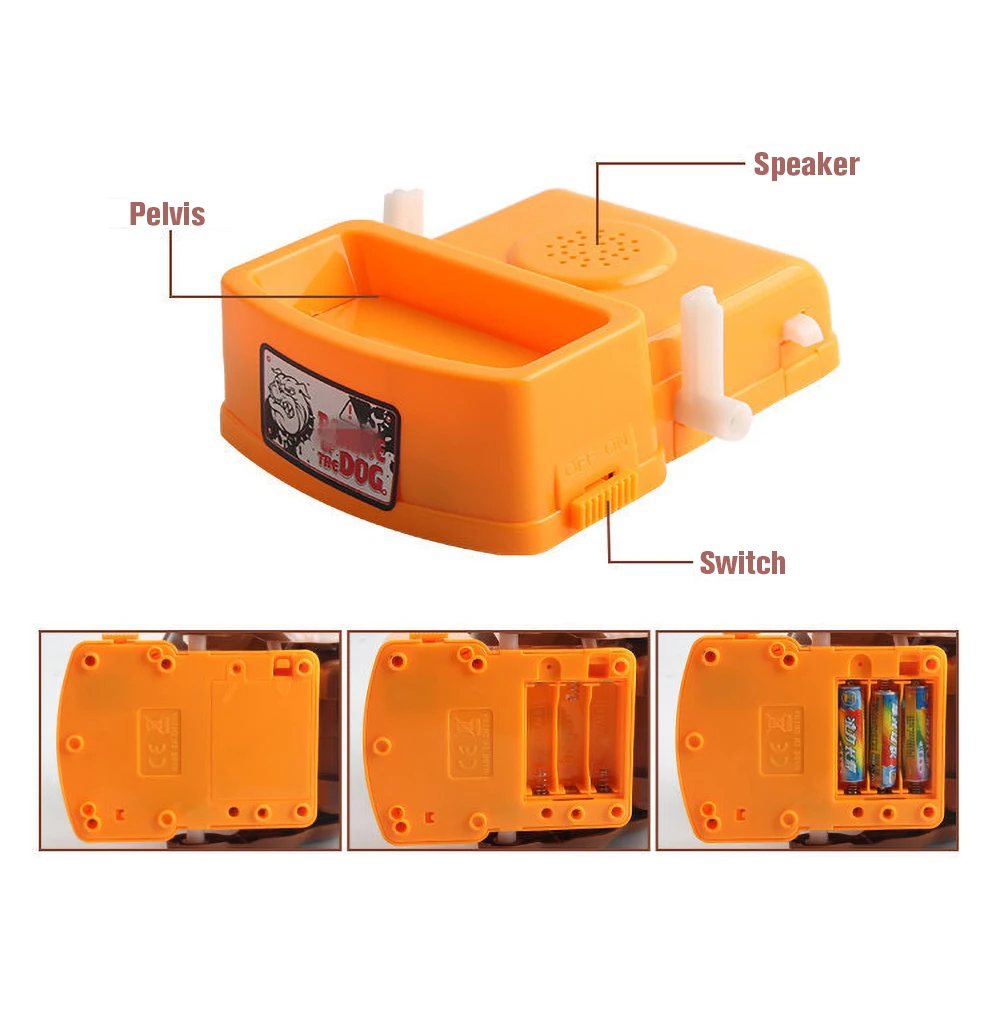 Нам нравится. Батареи не требуются. Забавная игра. Собака выглядит как она's спит, и их наталкивается, чтобы притвориться, что укус.