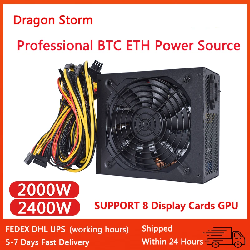 ATX 2400 Вт 2000 Вт 180-260 в подходит для всех видов горнодобывающего источника питания 8GPU ETH Rig Ethereum Miner PC PSU контроль температуры