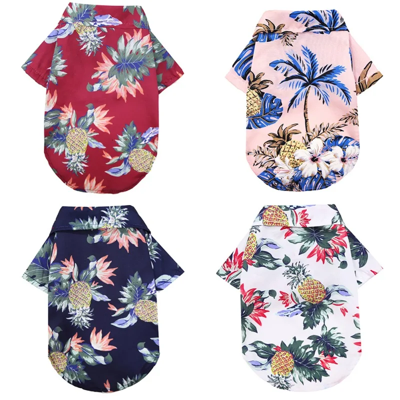 Летняя пляжная одежда для собак, гавайская рубашка, жилет Одежда для питомцев, футболка с цветочным принтом, мягкий жилет с кокосовым пальмом, футболка, наряд