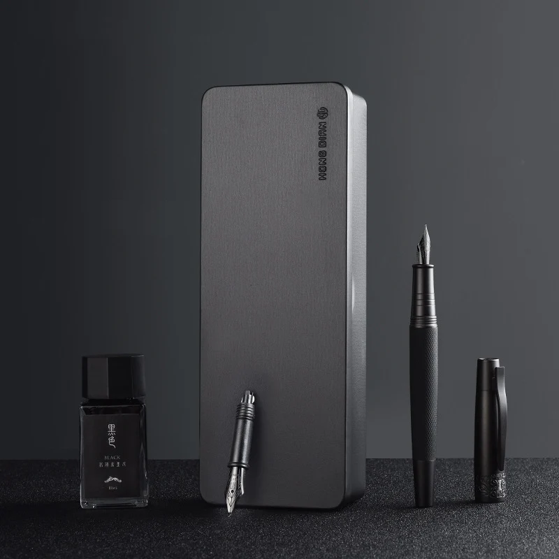 Ручка перьевая черная металлическая титановая с наконечником EFF