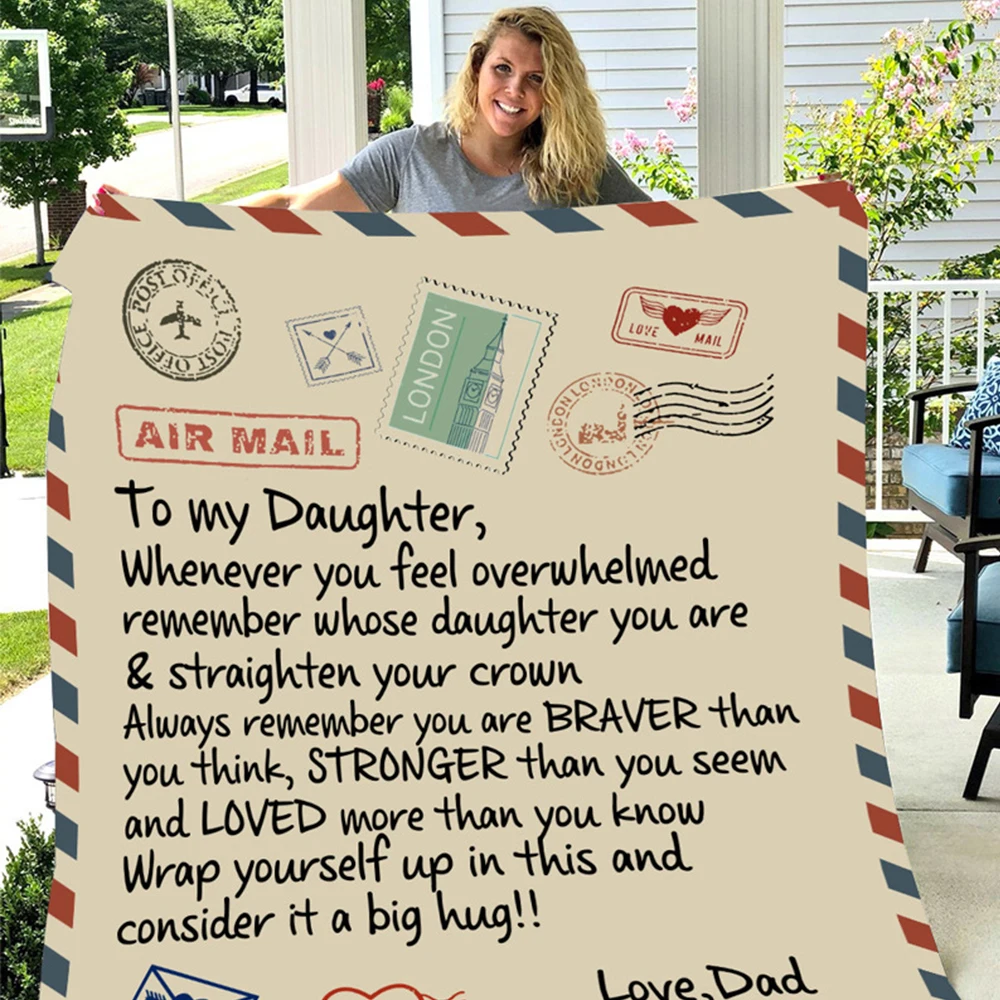 Изготовлен из высококачественного фланелевого материала, легкий, теплый, дышащий, супер мягкий, шелковистый и прочный. Доступно 3 размера, эффективно координирует это одеяло с различными комнатными настройками, выбирая разные размеры. Это будет идеальным выбором для обнимания с семьей, когда вы получите чашечку кофе и сидите перед телевизором или Держите ее на своей кровати, также в качестве идеального компаньона во время комфортного сна в вашей работе с нашим супер уютным одеялом. Это супер мягкое фланелевое одеяло предназначено для вдумчивого заботливого личного подарка для дочери от мамы даданда. Цель этого одеяла-не только приносить тепло, но и приносить улыбку, мужество и чувство любви. Только Флисовое одеяло, другие аксессуары на фото не включены.