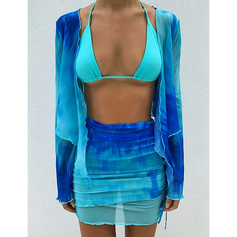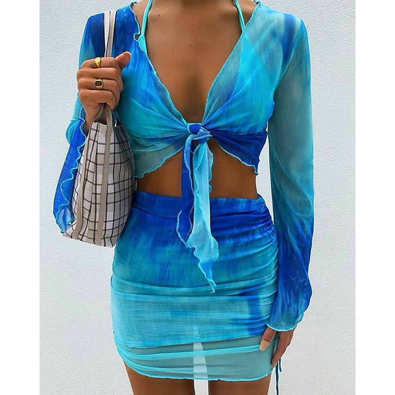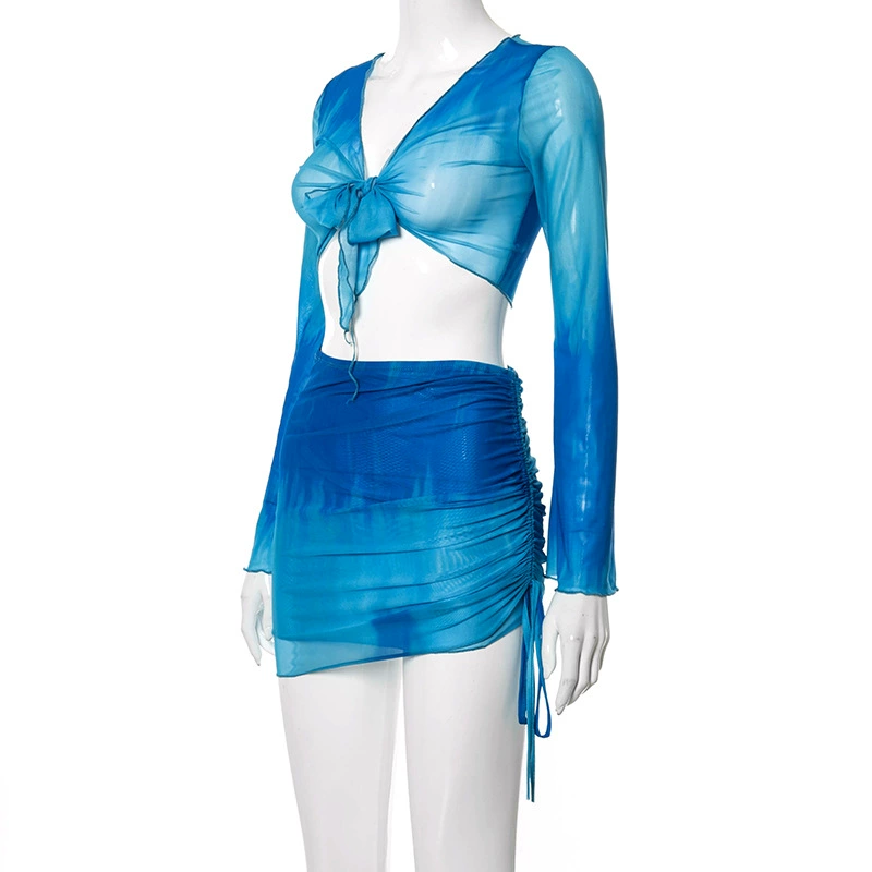 Женский костюм с юбкой и шортами, пикантный летний костюм из двух предметов с платьем-рубашкой и шнуровкой, пляжная одежда для отпуска, 2021