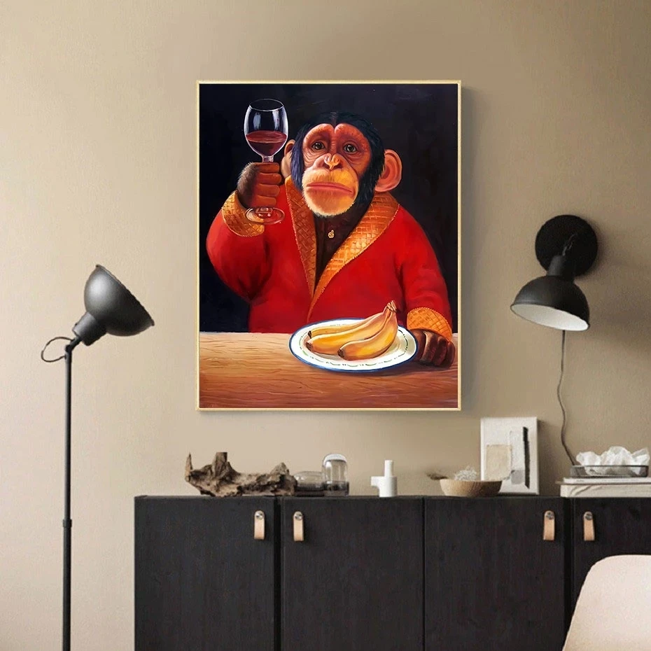 Джентльменская обезьяна с винным бокалом, Картина на холсте, настенные художественные плакаты с бананами и принтами, Горилла в одежде, картины для гостиной