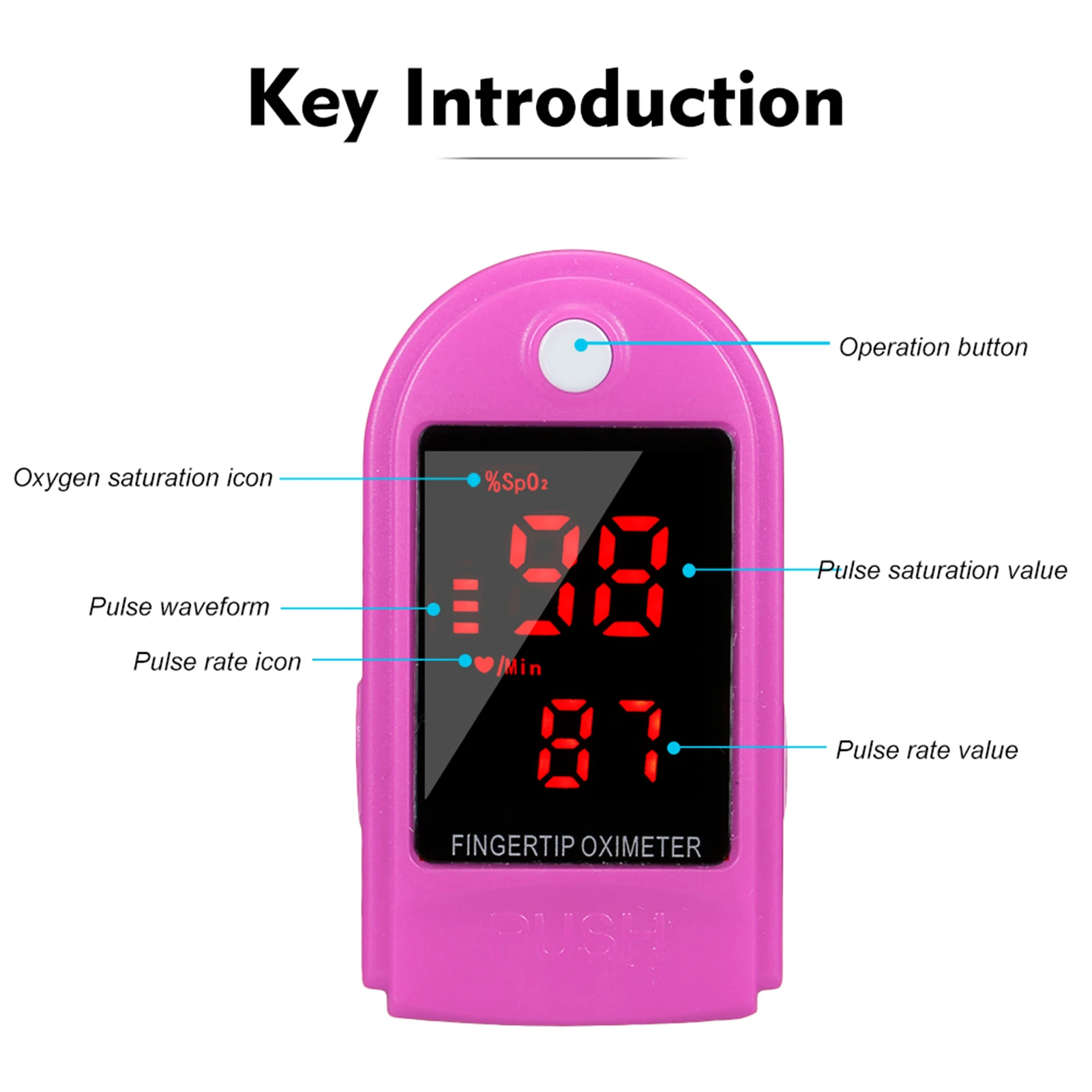 Особенности:Подходит для широкого диапазона размеров пальцев.Измерьте после небольшого отдыха, если вы сделали напряженные упражнения.Артериальное давление и кислород не должны измеряться одновременно.СВЕТОДИОДНЫЙ цифровой дисплей, четко показывает уровень насыщения крови кислородом, частоту пульса и силу.Предназначен для любителей спорта или тех, кому необходимо измерить уровень насыщения кислородом в крови и пульс.Характеристики:Цвет: розовый, синий, красный (на выбор)Напряжение: 2,6-3,6 VРабочий ток: 30 мАИсточник питания: 2 * AAA щелочные батареи (не входят в комплект)Посылка Вес: 40 г/1,4 ozПосылка Размеры: 13*9*3 см/5,1*3,5 * 1.2inПосылка:1 * измеритель пульса1 * Руководство пользователя