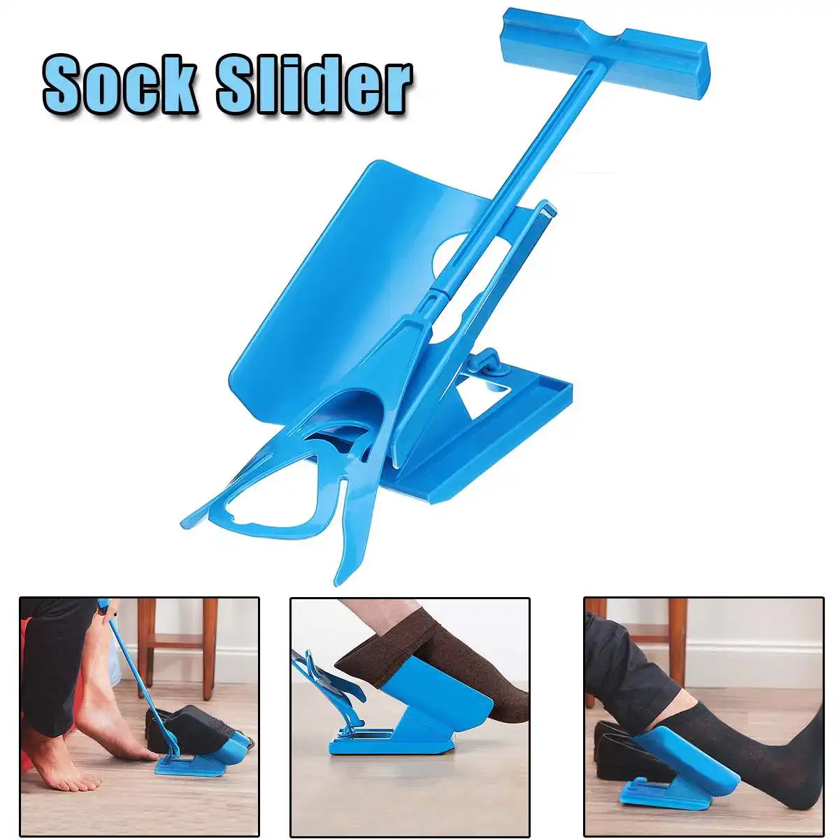 1 шт.компл. вспомогательный слайдер для носков синий цвет помогает надеть носки без изгиба обувной гудок подходит для поддержки носков