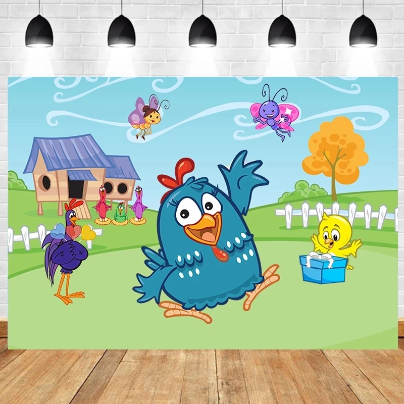 Фон для фотосъемки с изображением танцев голубой курицы пчелы мультяшная ферма Луг фон для фотосъемки новорожденных детей праздник на день рождения