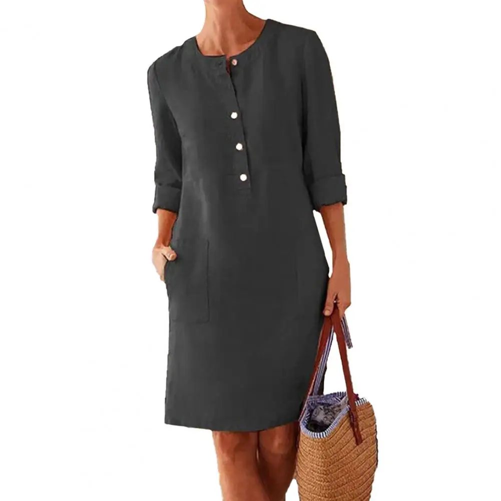 Женское платье с карманами, однотонное летнее платье с круглым вырезом и длинными рукавами на пуговицах для свиданий Описание:Однотонное платье с пуговицами, круглым вырезом и длинными рукавами; Это платье очень повседневное, простое и модное.Вы можете хранить свои личные вещи в карманах, таких как ключи, кошелек, карты и мобильный телефон, не беспокоясь о их потере.Изготовлено из высококачественного полиэстера, хлопка и льна, он мягкий, дышащий и удобный в носке.Есть пять размеров: M, L, XL, 2XL, 3XL.Это платье подходит для свиданий, праздников, офиса, вечерние, пляжные и т. Д. Наименование товара: платьеМатериал: хлопок, лен, полиэстерСтиль: ПовседневныйПол: женщинТип размера: размера плюсТип Посадки: свободныйТип воротника: круглый вырезДлина рукава: длинный рукавДлина платья: платье мидиСезон: летоОсобенности: сплошной цвет, карманы, дышащиеИнформация о размере:[Наши Размеры M] Бюст: 100 см/39,4 ", рукава: 59,6 см/23,5", плечо: 40 см/15,7 ", Длина: 97 см/38,2" (прибл.)[Наш Размер L] Обхват груди: 105 см/41,3 дюйма, длина рукава: 60,2 см/23,7 дюйма, ширина плеч: 41 см/16,1 дюйма, длина: 98 см/38,6 дюйма (прибл.)[Наши Размеры XL] Бюст: 110 см/43,3 ", рукава: 60,8 см/23,9", плеча: 42 см/16,5 ", Длина: 99 см/39" (прибл.)[Наш Размер 2XL] Обхват груди: 115 см/45,3 дюйма, длина рукава: 61,4 см/24,2 дюйма, ширина плеч: 43 см/16,9 дюйма, длина: 100 см/39,4 дюйма (прибл.)[Наши Размеры 3XL] Бюст: 120 см/47,2 ", рукав: 62 см/24,4", плеча: 44 см/17,3 ", Длина: 101 см/39,8" (прибл.) Примечания:Пожалуйста, обратитесь к нашей таблице размеров и выберите правильный размер.Благодаря светильник и экрана Цвет Товара может быть s светильник ly отличается из-за характеристик монитора компьютера. Посылка включает в себя:1 платье (сумка в комплект не входит)