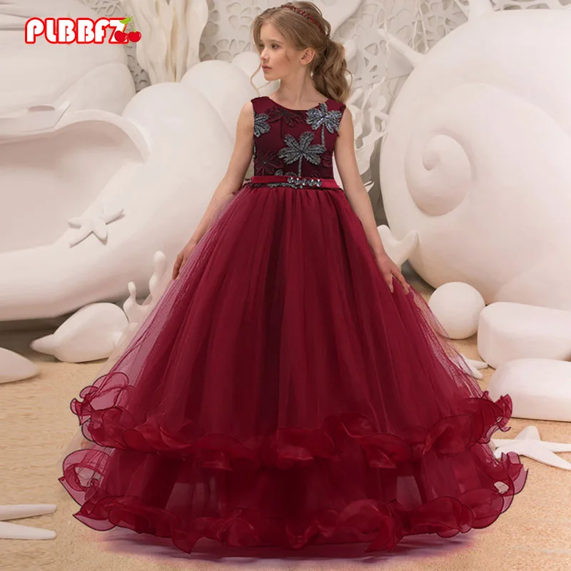 PLBBFZ Рождественский винтажный костюм детская одежда с вышивкой платье принцессы с лепестками вечерние нее свадебное платье для девочек 10 12 13 лет