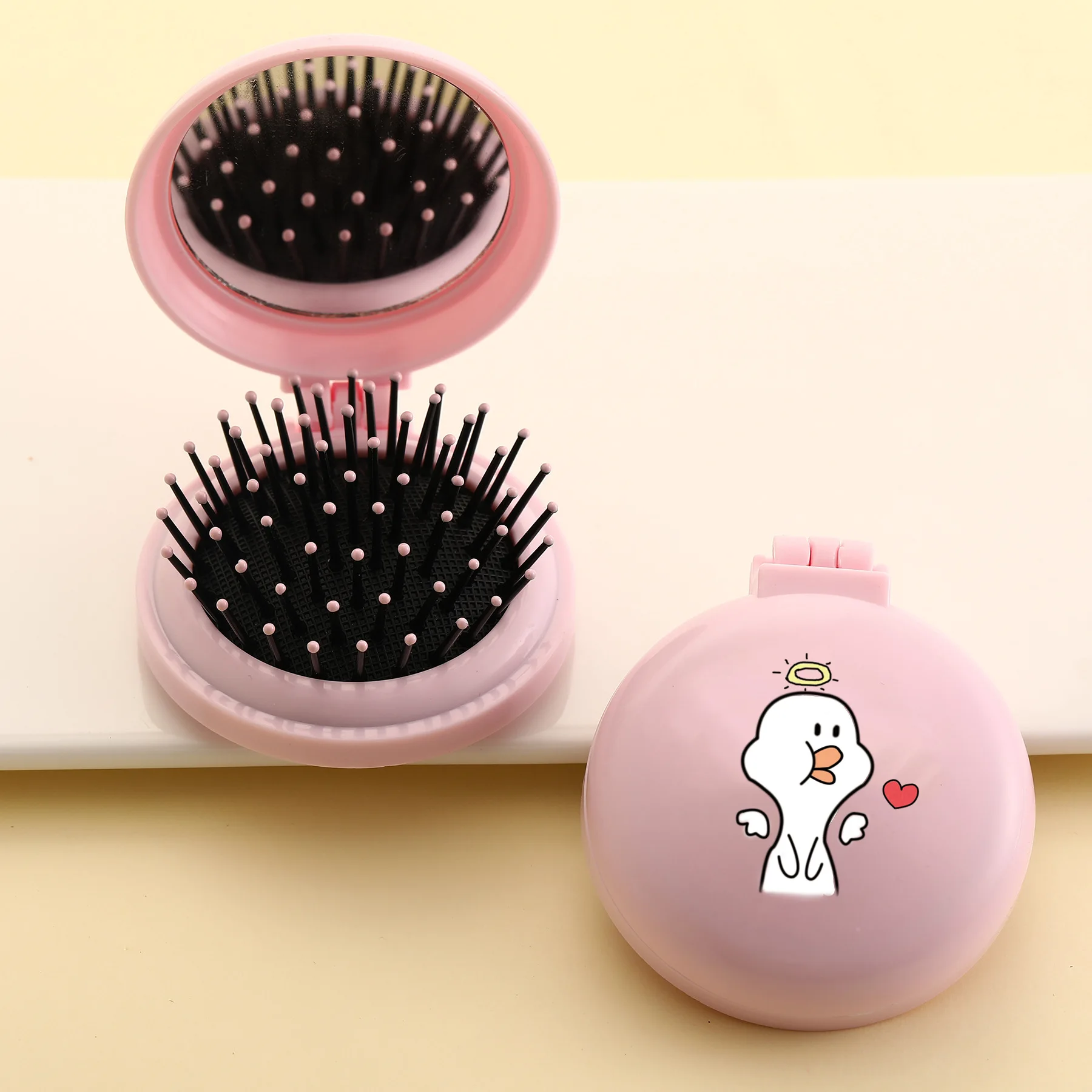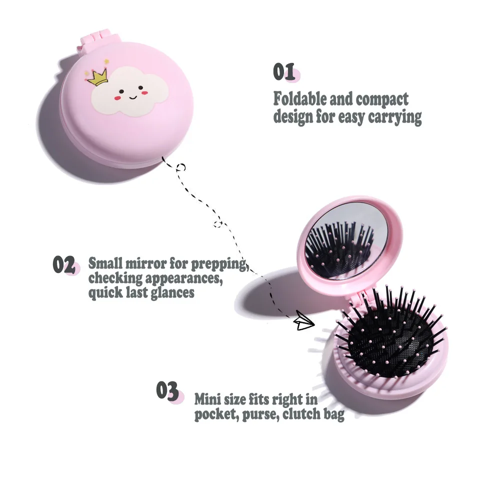 Розовый Складной Расческа Зеркало массаж Единорог щетка для волос маленькая воздушная подушка зеркало расческа