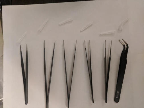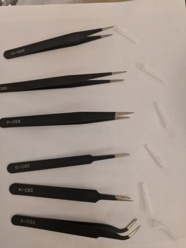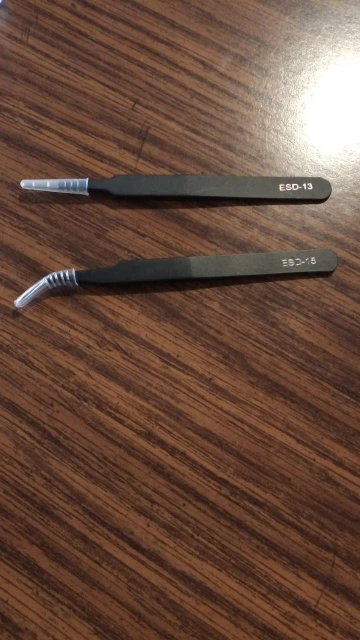 Эти пинцеты хороши по цене, но они слишком жесткие. Нанесение большого давления пальцами снизит точность размещения компонентов.