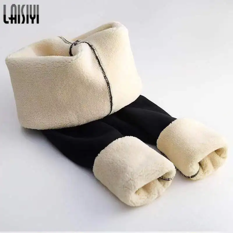 Женские зимние леггинсы, теплые брюки, супер толстые эластичные кашемировые леггинсы из ягненка, узкие брюки с высокой талией, леггинсы