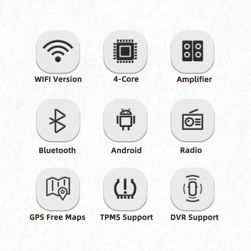 Система ОС AndroidРазрешение: 1024*600. 2.5D сенсорный экранПроцессор: Cortex A7 1,3 GHz X 4 Quad-CoreRAM + ROM: 1 Гб + 16 ГБ/2 ГБ + 32 ГБ1024*600 емкостной экранПоддержка функции DVRВстроенный WIFIПоддержка HD 2D и 3D игр Поддержка внешнего 3G/4G ключа (Версия usb WIFI)Встроенная gps-навигация с 3D картой (Подарочная карта хранится в встроенной памяти)Поддержка оригинального управления рулем.Непосредственно подключи и работай.Быстрая реакция после освещения автомобиля: в течение 1 сек для запуска, в течение 2 сек для звука,Поддержка Bluetooth всех брендов мобильных телефонов, ввод телефонной книги, воспроизведение музыки, поиск имени с помощью A-Z Поддержка видео: WMV (код VC1) AVI (H.264, MPEG4,Xvid, WMV),MP4 (H.263, H.264, MPEG4), MPG(MPEG-2),M4V(H.264, MPEG4)