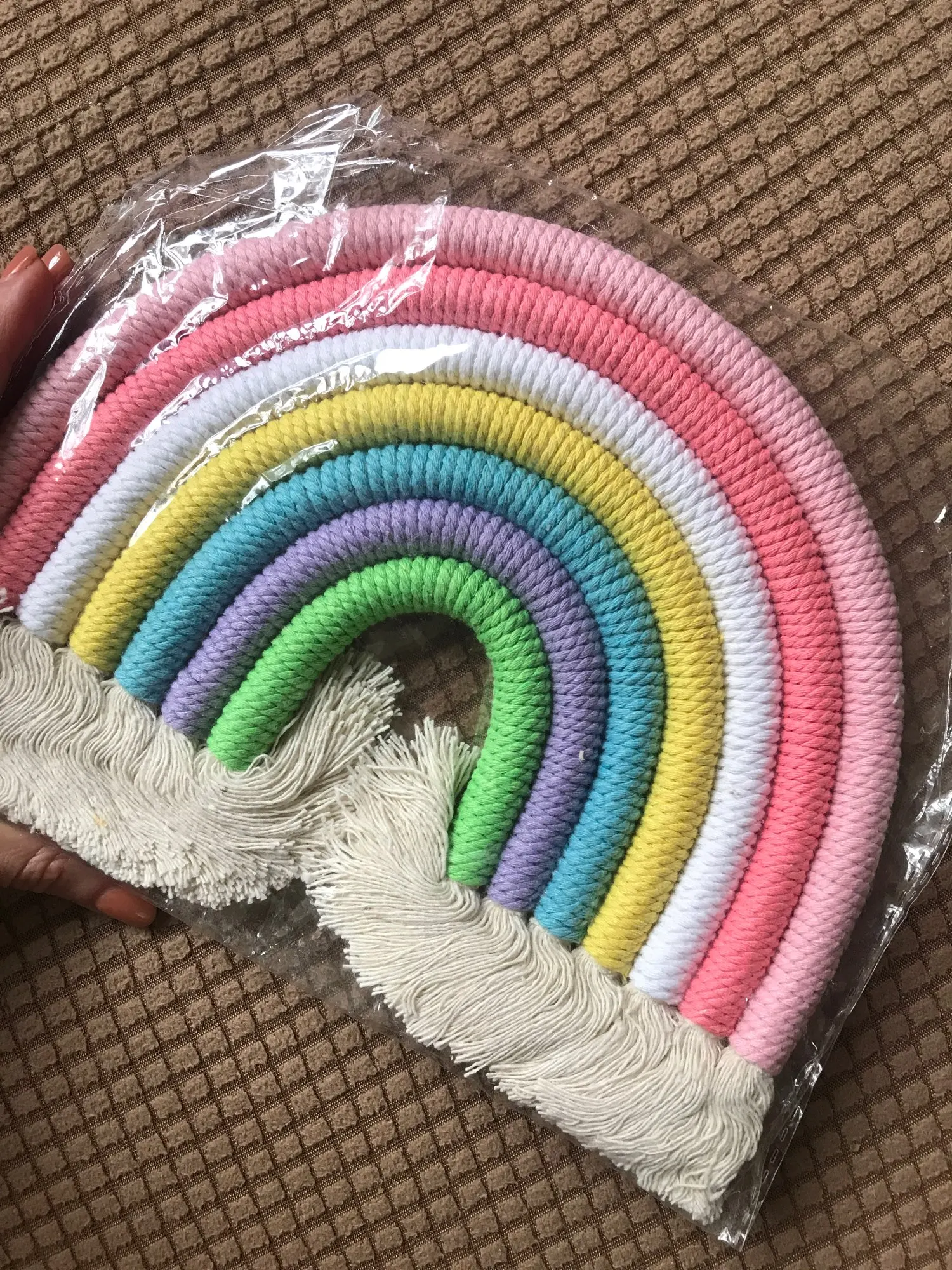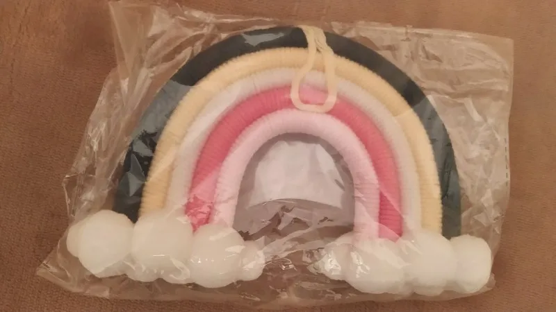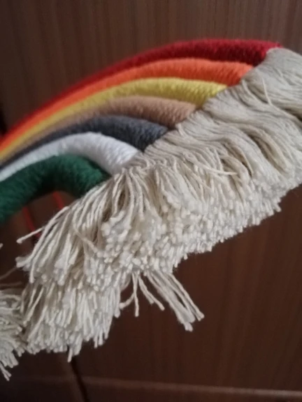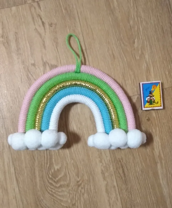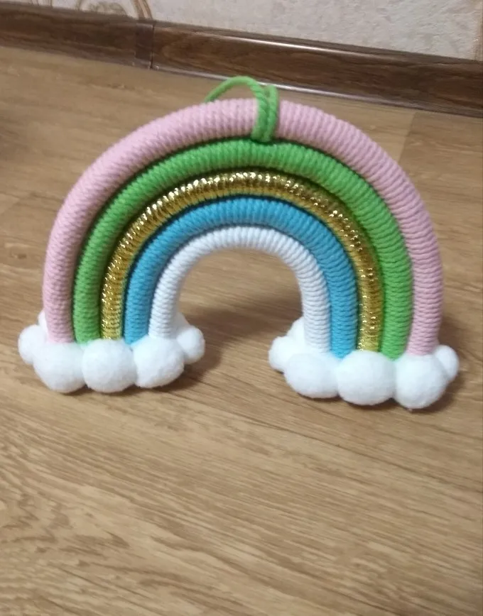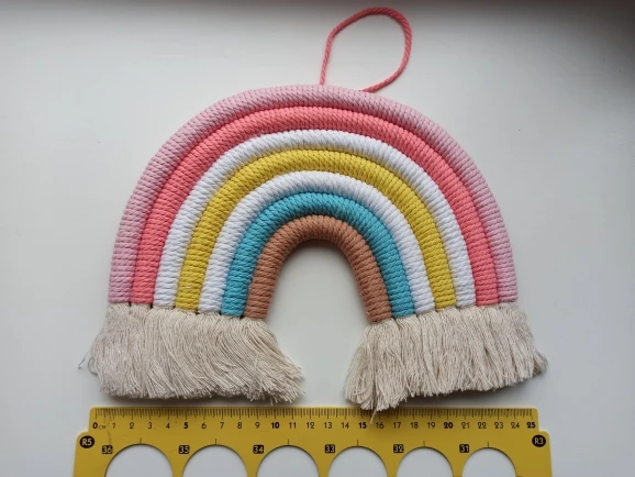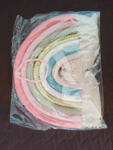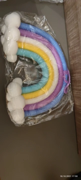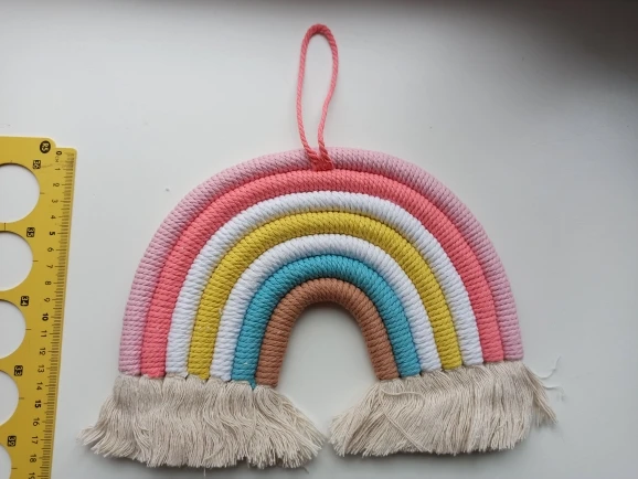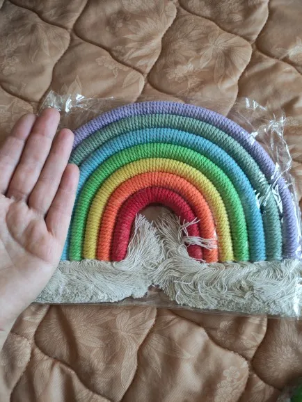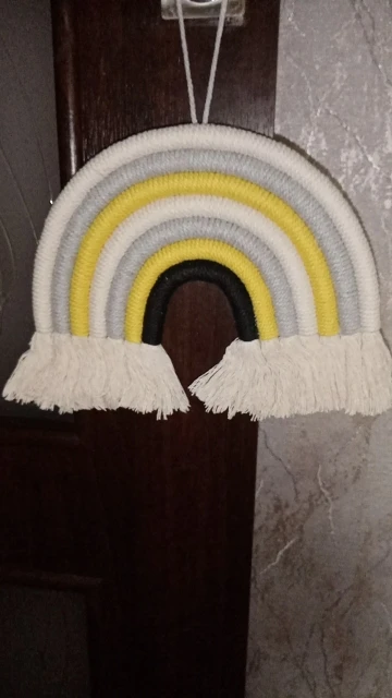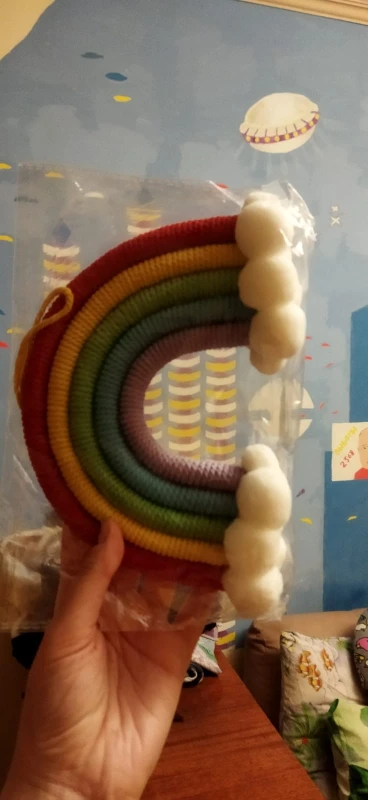 Красивый скандинавский декор сделанный из натуральных материалов. Посылка пришла с доставкой на дом за три недели. Декор сделанный из семи разноцветных дуг в виде подковы с тесьмой для подвешивания. Цвета декора приятные и красивые. Посылка отслеживалась на всем протяжении пути. Товар полностью соответствует описанию и картинке в приложении. Товаром довольна, продавцу поставила 5 звёзд за хороший и качественный товар и всем советую и рекомендую магазин и продавца. Продавец надёжный и не обманывает.