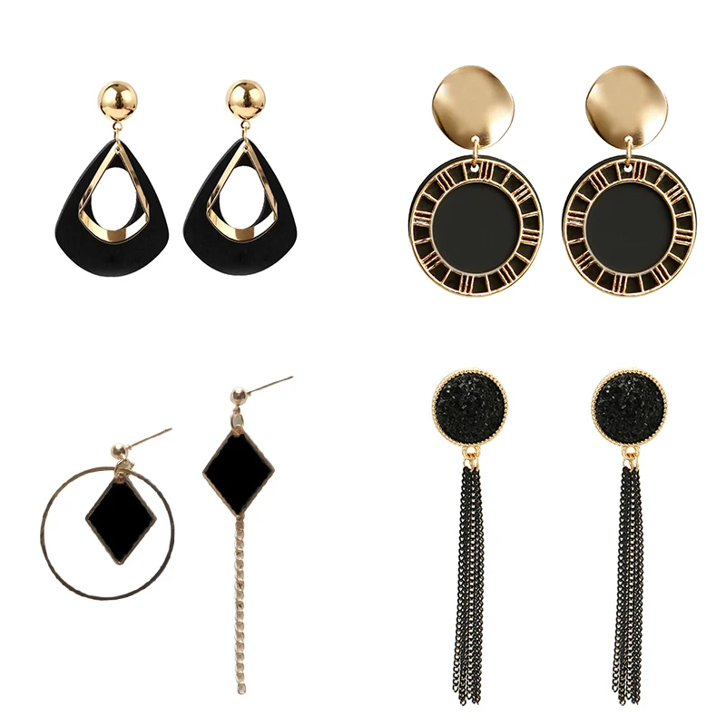 Черные акриловые геометрические Висячие золотые серьги-капли для же...