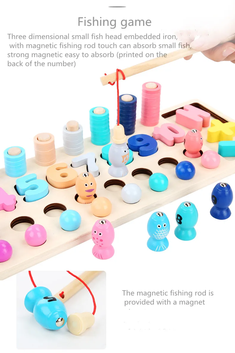 Деревянная логарифмическая доска Монтессори, магнитная рыболовная ф...