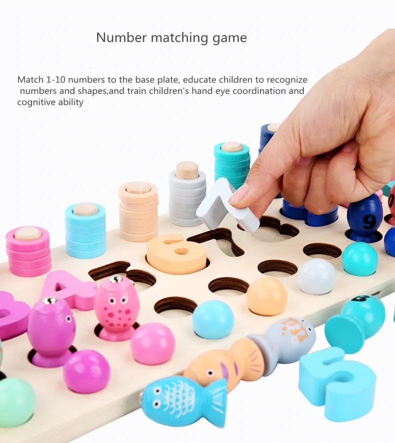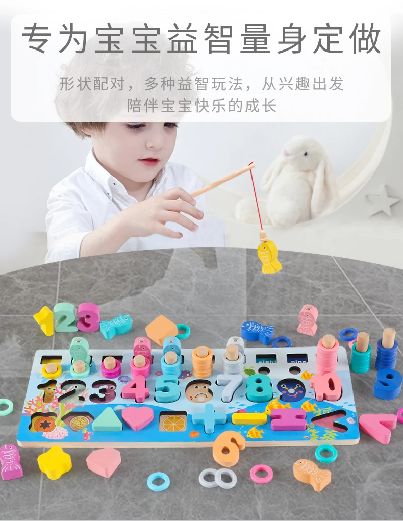 Конструктор из деревянных игрушек для детей, занятая доска, математическая рыбалка, для детей дошкольного возраста, Монтессори, счетная Геометрическая головоломка