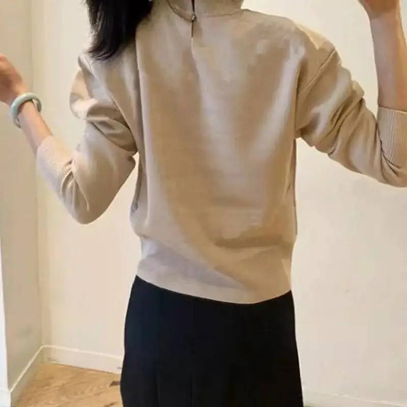 Женский пуловер с вышивкой, свитер с воротником-стойкой и вышивкой в виде листьев лотоса, Осень-зима 2021
