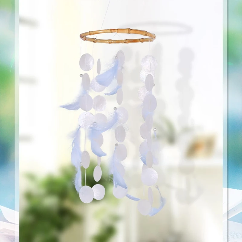 Колокольчики с ракушками и перьями, колокольчики, успокаивающие оттенки, подарки для дома и улицы, крыльца, сада, заднего двора, украшение для дома