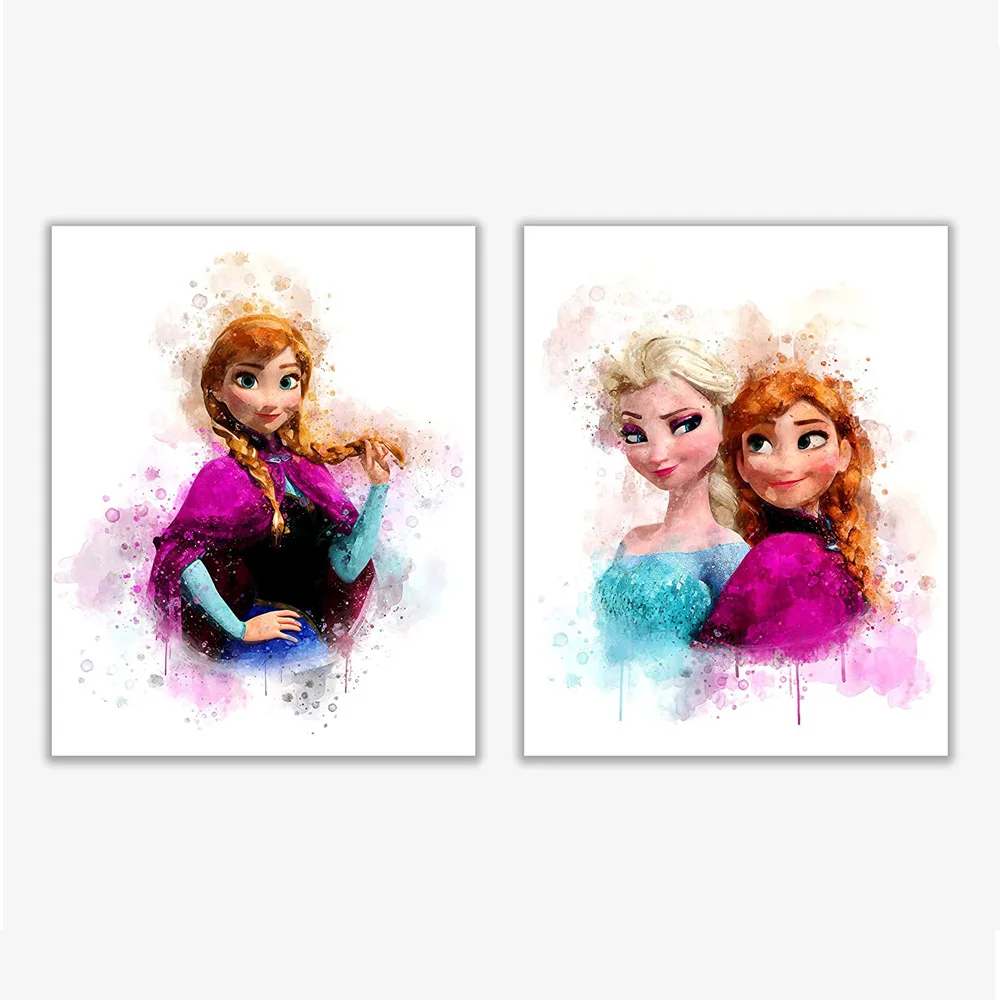 Disney Frozen Princess, акварельные настенные художественные плакаты и принты, абстрактные настенные картины для девочек, фотографии для детской комнаты, декорации на стене, фотографии для детской комнаты