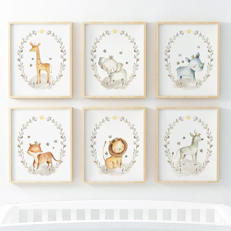 Милые Мультяшные Животные декоративные картины лев ребенок слон Дет...