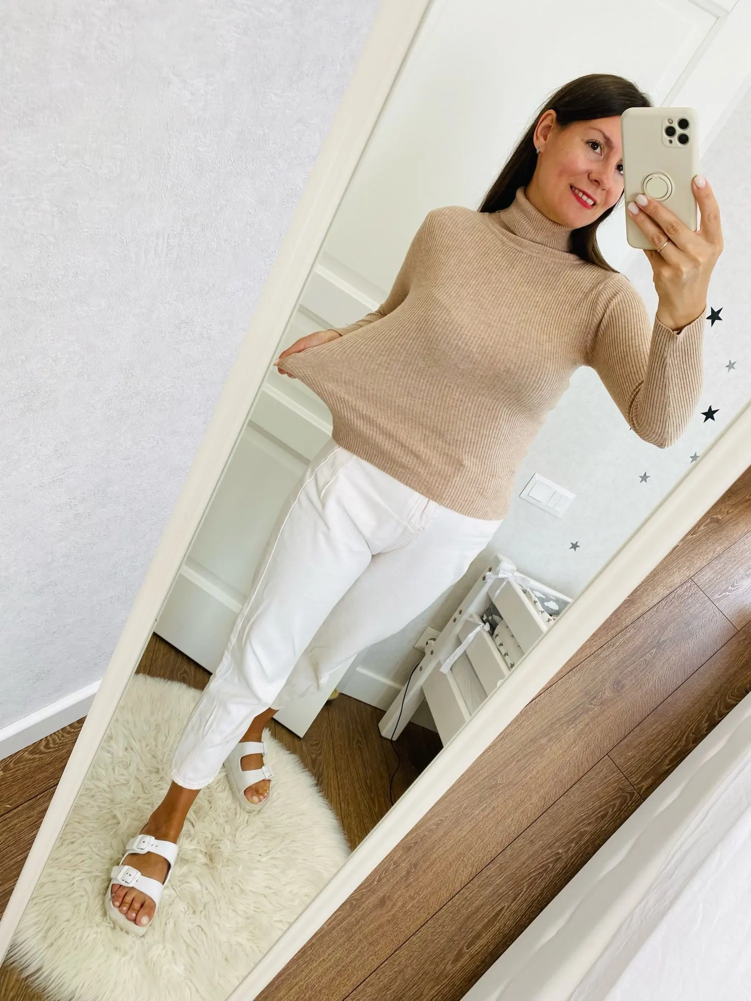 Базовая водолазка в бежевом цвете - мастхэв любого гардероба Я вовсю готовлюсь к осени, не смотря на то, что за окном +30☀️ Люблю заказывать вещи заранее, чтобы быть готовой к смене погоды на все Доставка была меньше 2 недель в пункт самовывоза Гольфик очень мягкий и приятный на ощупь. Много цветов на выбор. Представлен в едином размере. На параметры 88 65 сел в обтяжку, хорошо тянется. Рукава на рост 175 см слегка коротковаты. В носке удобная, рекомендую