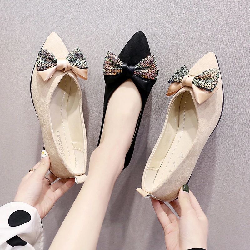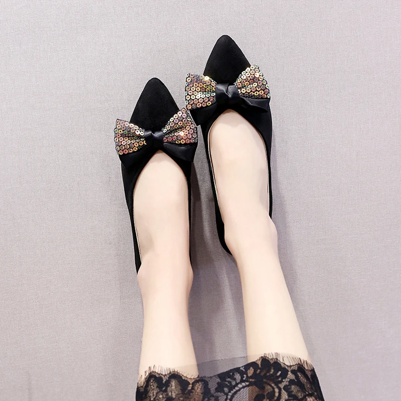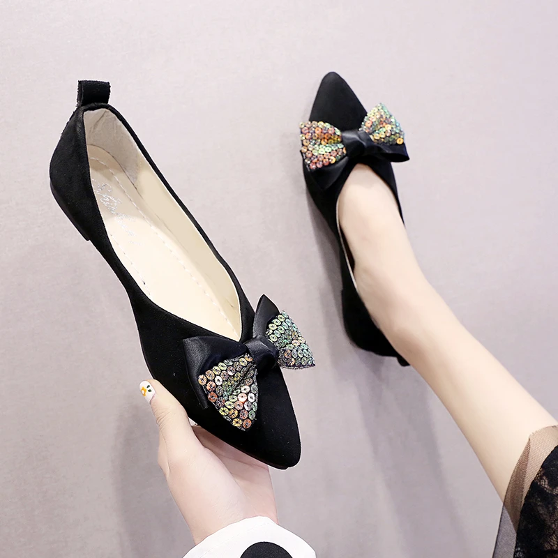 Женские мокасины на плоской подошве, с острым носком, лоферы без застежки, с бантом, большие размеры 35-43, 9295N