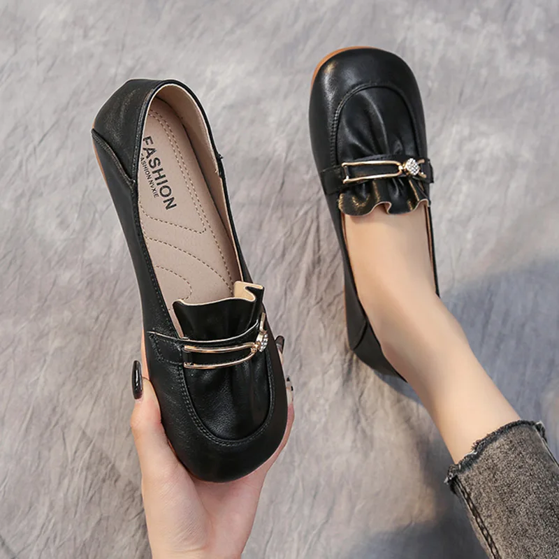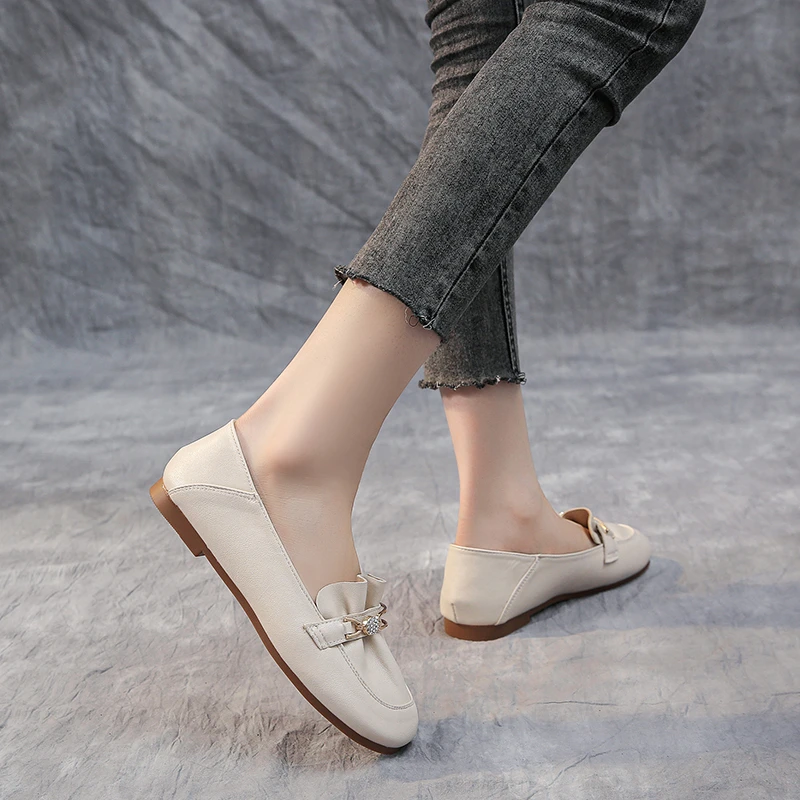 Туфли женские весенние на плоской подошве, с ремешком на щиколотке