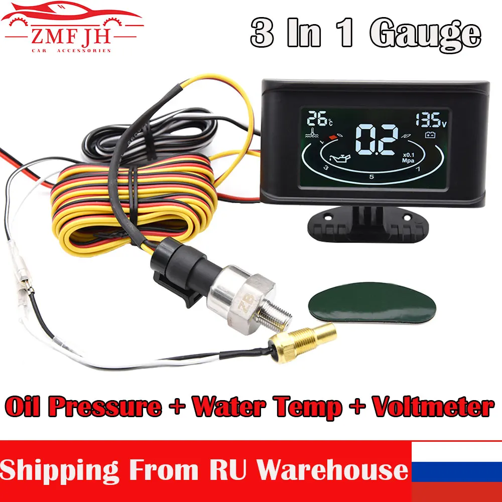 Многофункциональный автомобильный манометр 3 в 1, цифровой ЖК-измеритель давления масла, температуры воды и напряжения, 1224 В, для автомобилей, экскаваторов, грузовиков
