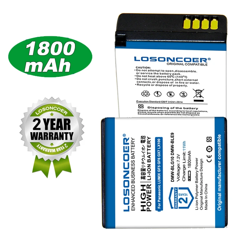 Аккумулятор LOSONCOER на 1800 мА ч DMW-BLG10 BLG10 DMW-BLE9 для Panasonic LUMIX GF5 GF6 GX7 LX100 GX80 GX85 DC-ZS70 ZS60 ZS100