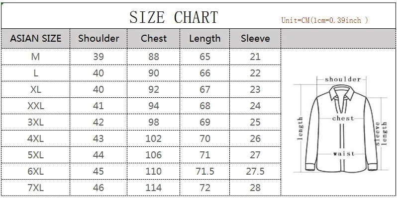 Примечание:Мы продаем Азиатский размер околоНа 2-3 размераМеньшеЧем размеры США, Великобритании, Австралии, Европы. Пожалуйста, выберите размер в соответствии с нашей формой размеров. Мы лично сняли все мерки и проверили их. Когда вы размещаете заказ, пожалуйста, напишите сообщение с вашим плечом (см) и грудью (см). Мы поможем вам подтвердить размер. Подумывайте о покупке!