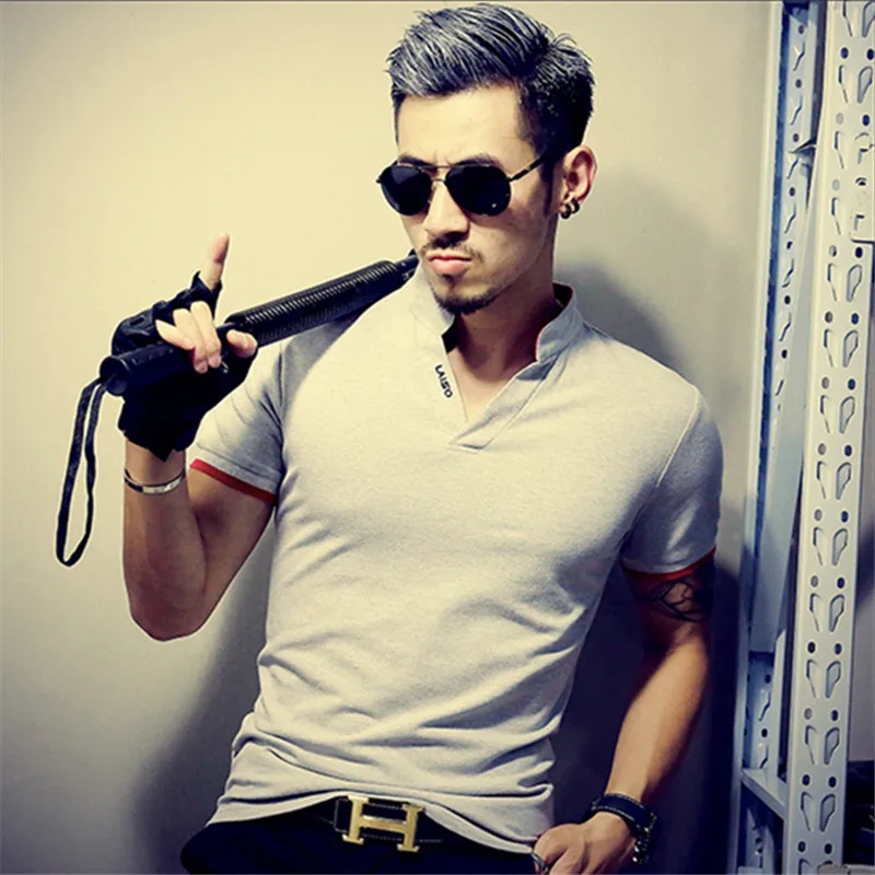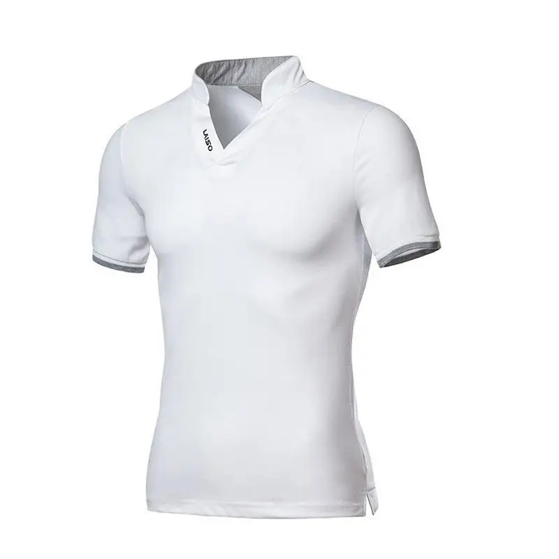 Летняя мужская рубашка поло из хлопка с коротким рукавом, с v-образным вырезом, Модная приталенная Мужская рубашка поло, повседневная мужская одежда белого размера плюс